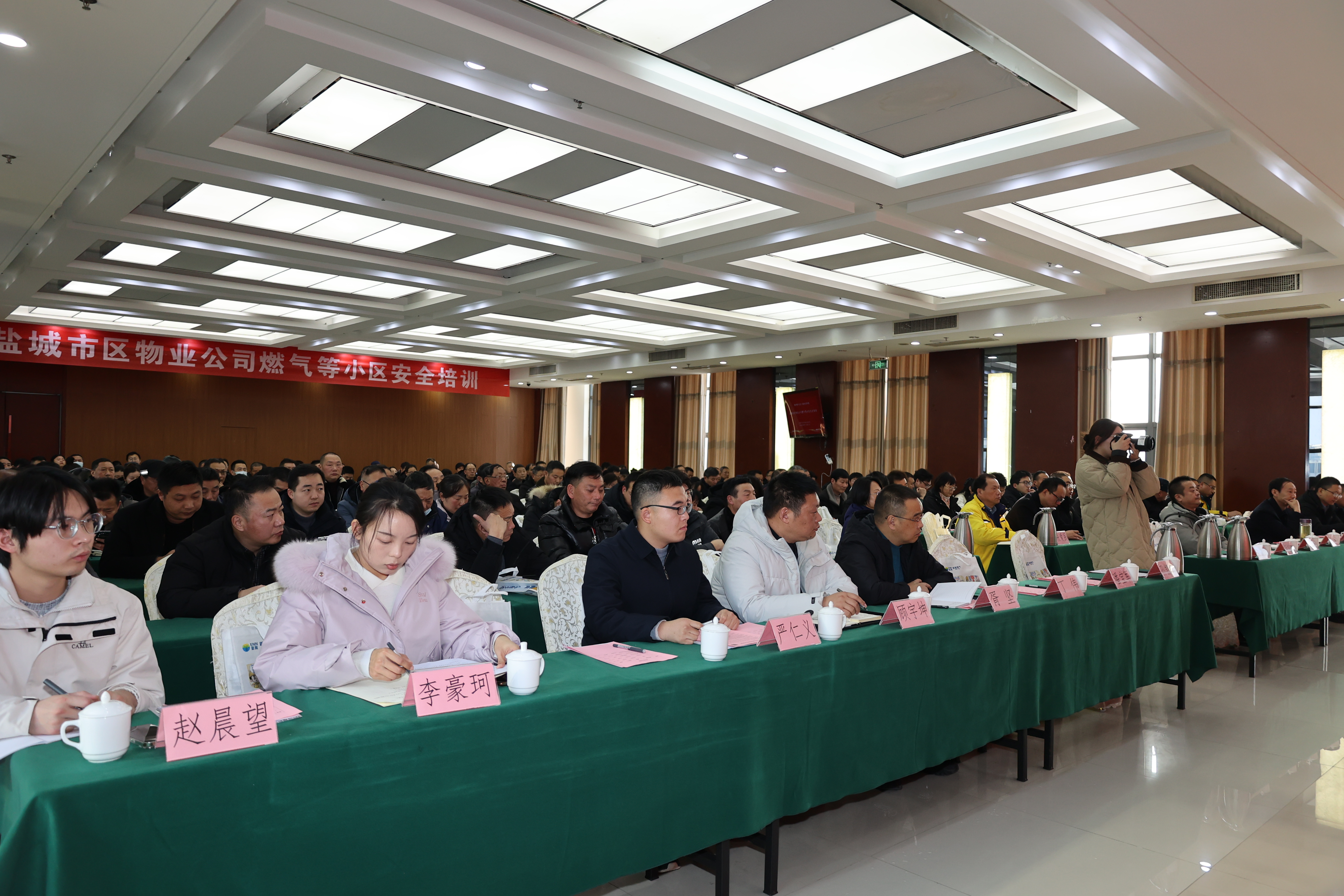 会上,盐城新奥燃气和市水务集团的安全员用详尽的典型案例,就燃气及供水安全要点作深入浅出讲解;与会物业负责人不时抬手拍照记录燃气巡检、常见隐患识别、应急处置等核心内容。大屏上真实事故的现场对比图,强烈的视觉冲击让在场每一位物业经理都屏住了呼吸。这一场让安全知识“看得见、摸得着、用得上”的沉浸式培训,为节前城市安全防线注入新的活力。