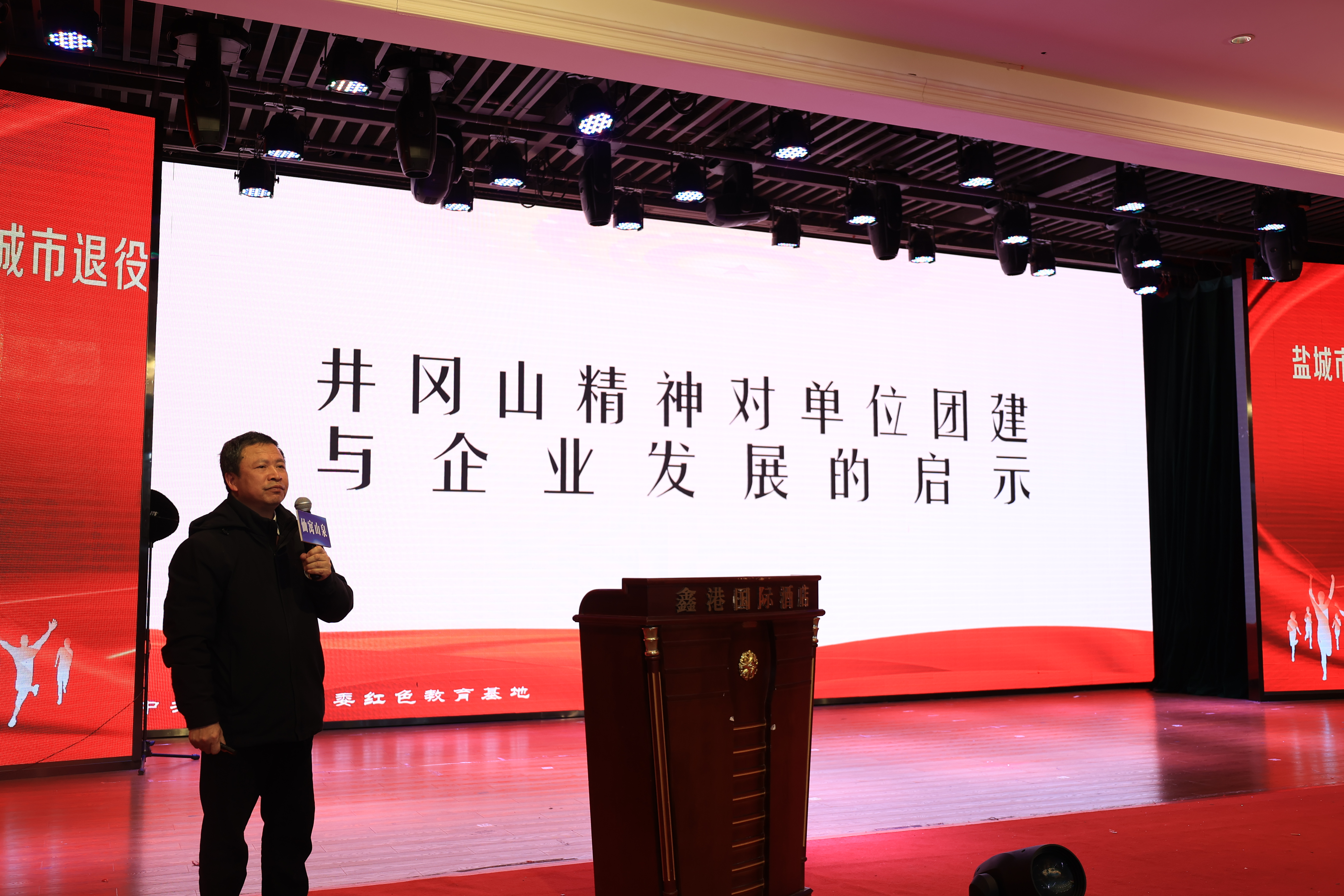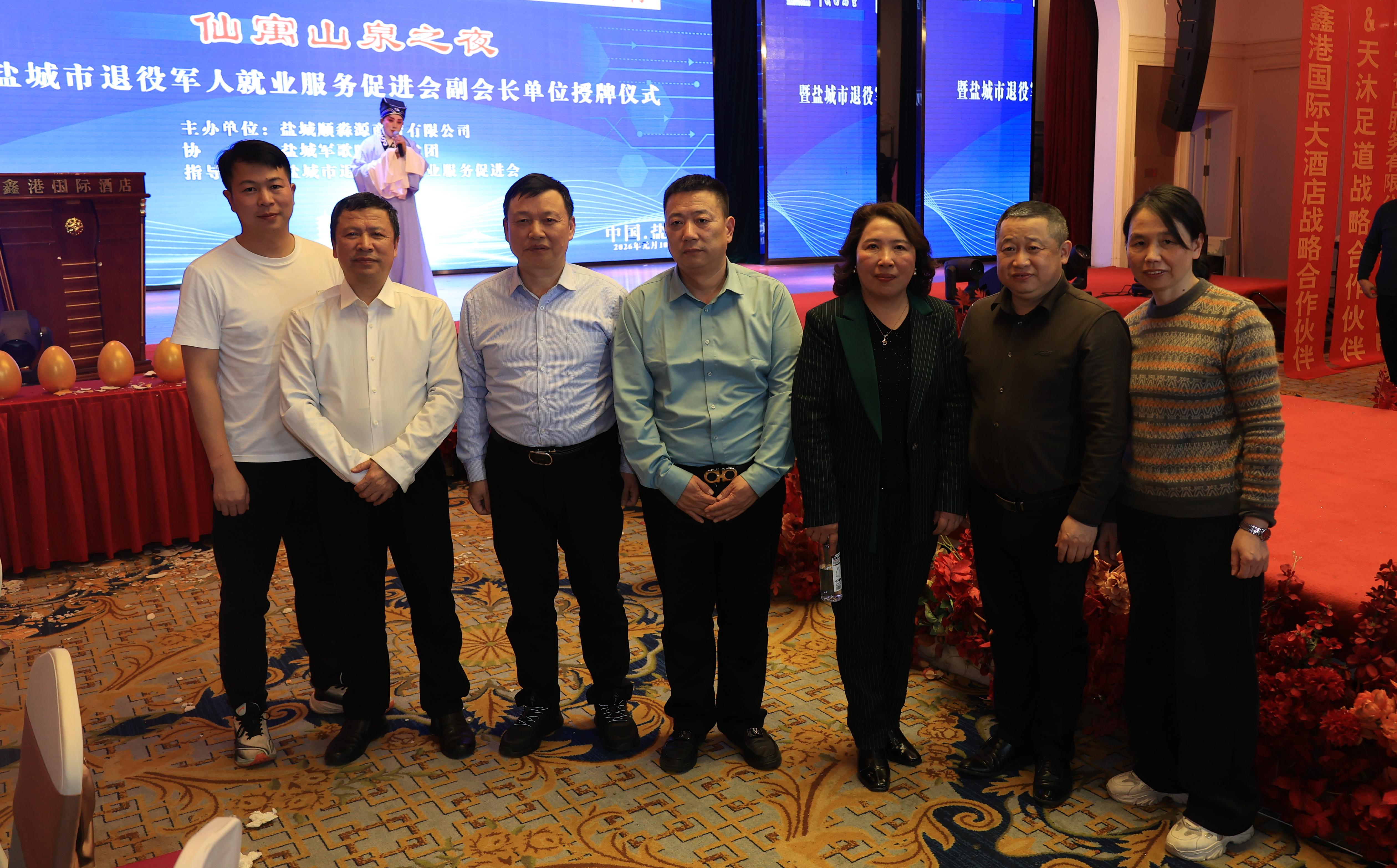 1月10日,市退役军人就业创业服务促进会副会长单位授牌仪式暨新年年会在盐城市区举行。市退役军人就业创业服务促进会名誉会长徐汉林到会指导工作。市退役军人关爱基金会党支部委员、盐城军歌嘹亮艺术团创始人钱建军,市退役军人就业创业服务促进会副会长、仙寓山泉华东地区运营总监陈国正分别为在场的企业家和退役军人创业代表介绍相关工作情况,表示要努力打造盐城退役军人关爱工作品牌并不断擦亮这张名片。会上,受邀前来的井冈山客人宣讲井冈山精神成为此次活动亮点,获得大家一致好评。