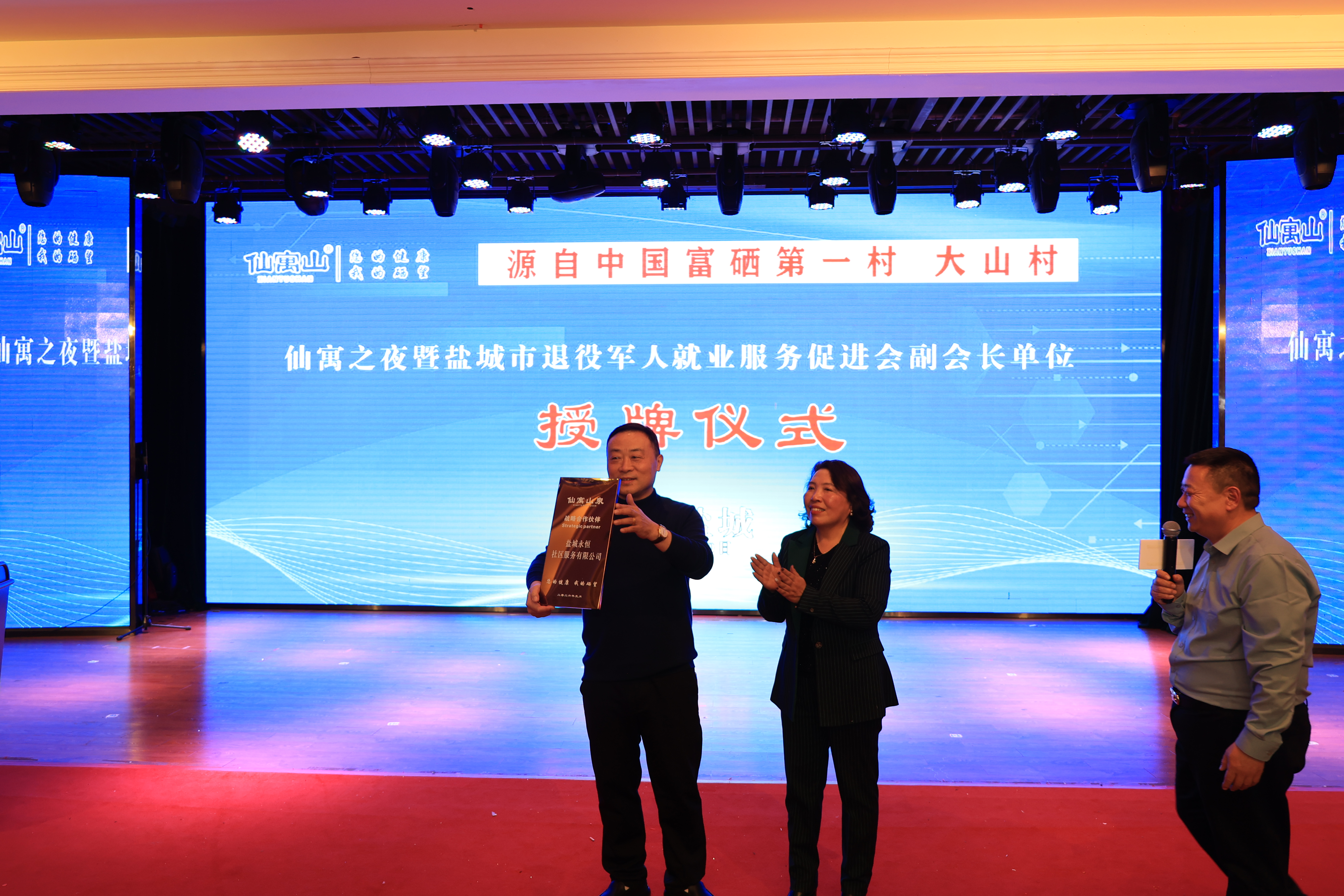 年会开始前,市退役军人就业创业服务促进会会长曹雪生将副会长单位铜牌颁授给盐城顺淼源商贸有限公司总经理、仙寓山泉盐城服务中心负责人吴冬梅。“我们一直积极参与社会公益活动,值此仙寓山泉盐城服务中心开业之际,对退役军人和困难群众等免费供水送健康。”吴冬梅表示,将切实发挥促进会“倍增器”作用和“润滑剂”功能,努力实现资源共享、相互带动、共同发展等目标。