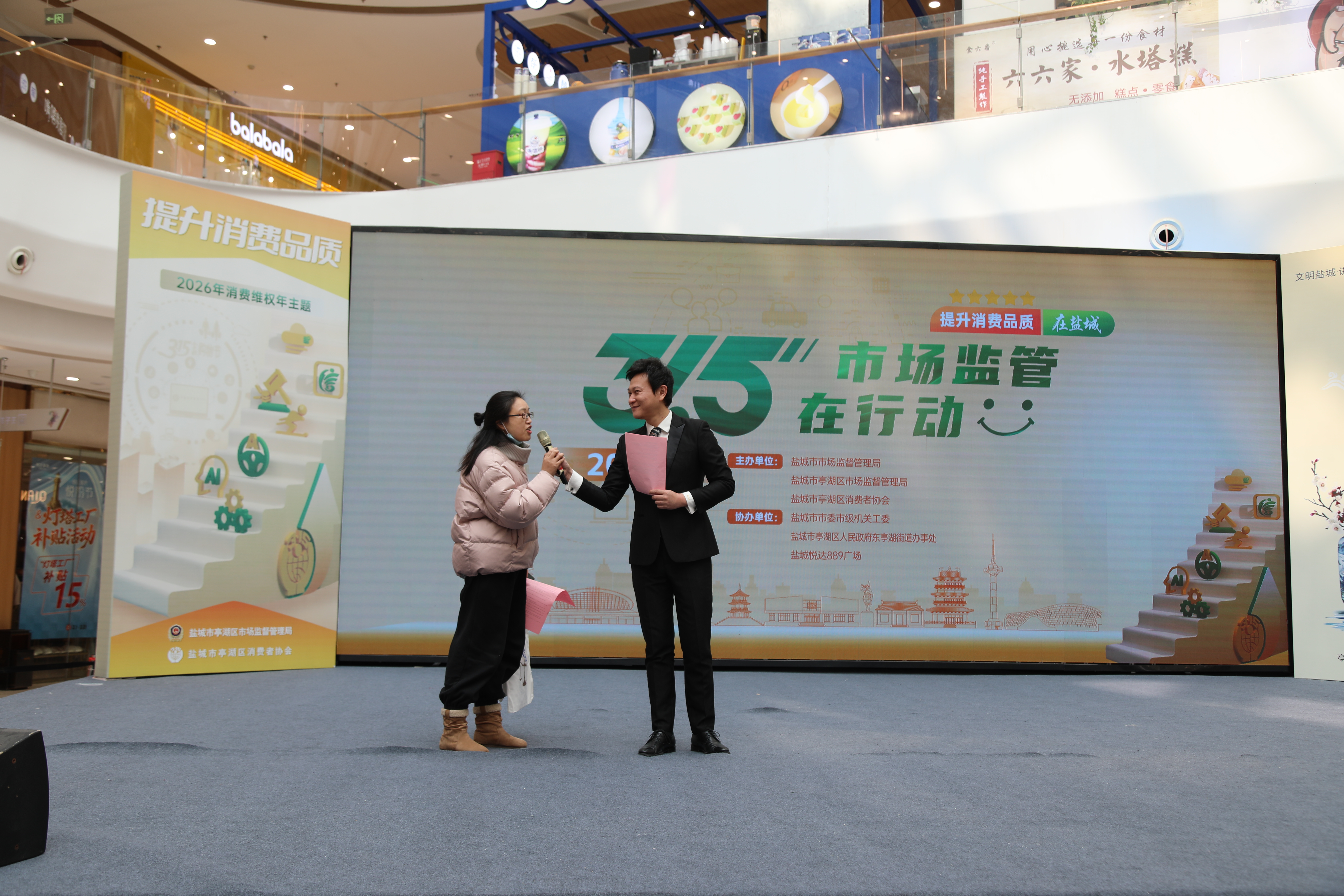 提升消费品质,优化消费环境。3月15日上午,2026年“3·15”国际消费者权益日暨盐城市放心消费“三承诺”活动在悦达889商业广场举行。此次活动由市市场监管局、亭湖区市场监管局、亭湖区消费者协会共同举办,现场设立众多宣传台位,现场为市民解答消费过程中遇到的问题。活动还包含“3·15”广场宣传、食品安全“你送我检”、放心消费“三承诺”、有奖知识问答、发布消费提示等诸多环节,活动互动性强,氛围热烈,吸引了众多市民参与。(纪哉)