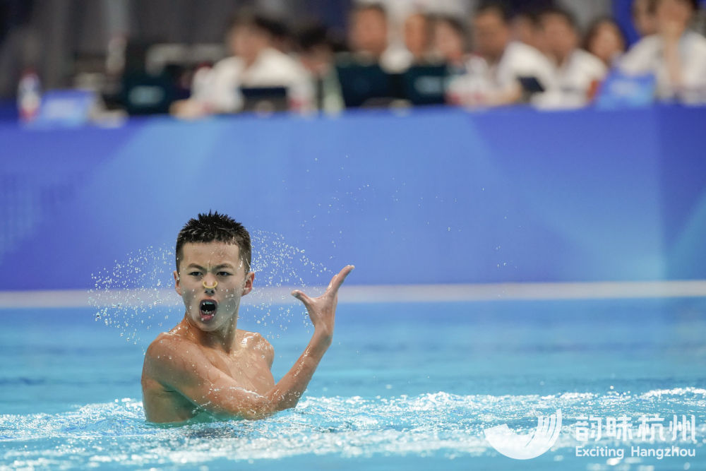 2023年全国花样游泳冠军赛26日进入第二日比赛,本届冠军赛增设了男子单人项目,集体项目也按照巴黎奥运会的规则,允许有最多两名男选手加入。当晚的技巧自选比赛中,8支队伍中5支有男选手加入,“水上芭蕾”的“男演员们”格外引人注目。