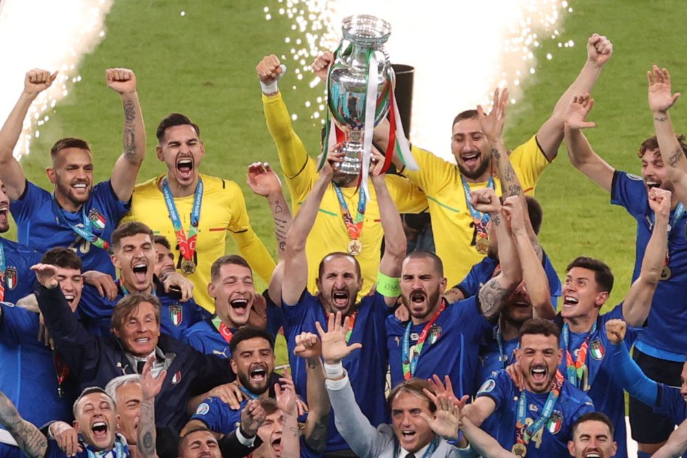 作为意大利国脚,基耶利尼随队征战了两届世界杯与四届欧锦赛。2012年,他助“蓝衣军团”夺得欧锦赛亚军;2021年,他作为队长,率领球队夺得欧锦赛冠军。