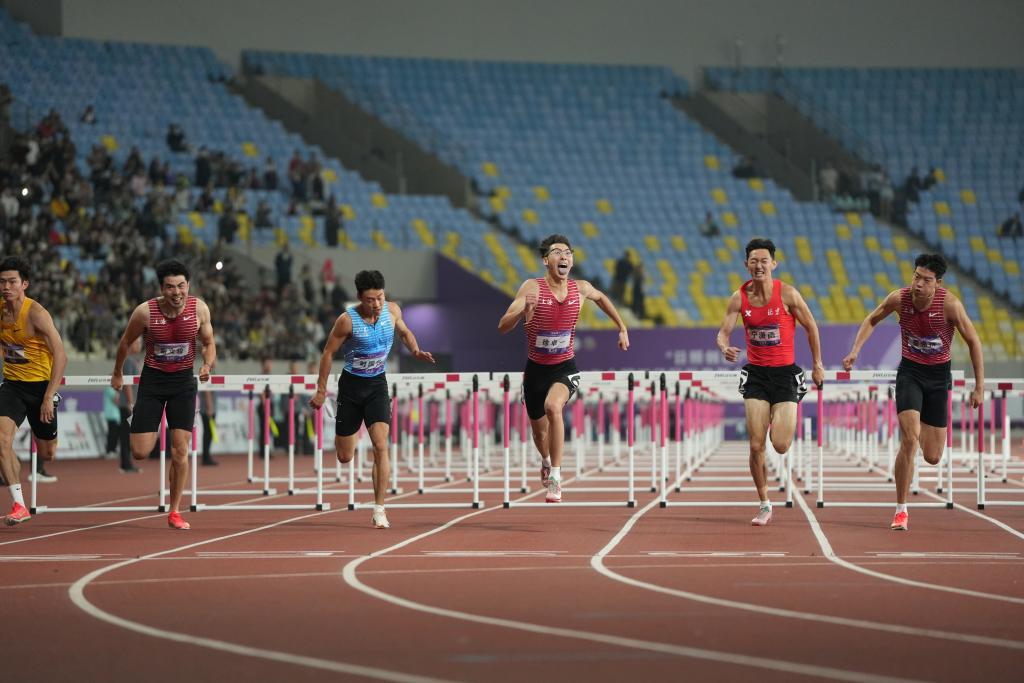 率先进行的男子110米栏比赛中,徐卓一跑出13秒40,以0.12秒的优势力压队友秦伟搏夺冠。山东队的时国兴以13秒54获得第三名。上海队老将谢文骏以13秒59位列第四。
