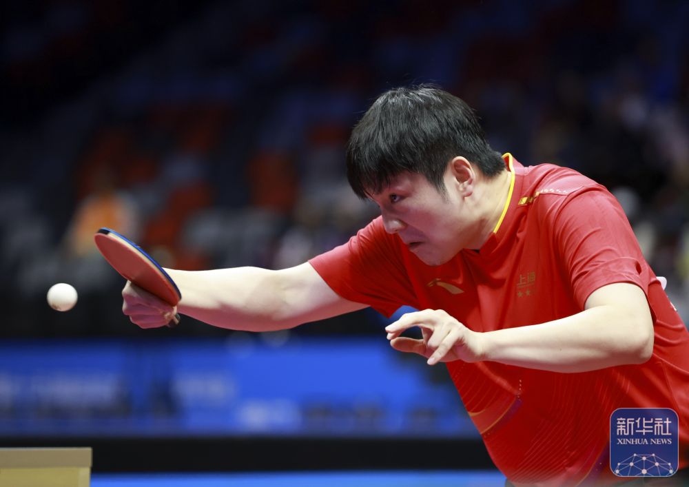 11月16日,第十五届全国运动会乒乓球男子单打金牌赛在澳门举行,上海队选手樊振东4比1战胜海南队选手林诗栋,夺得金牌。