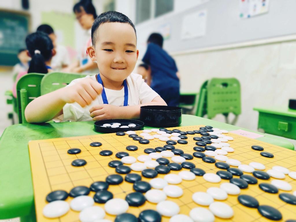 赛场上,小棋手们端坐在棋盘前,稚气的脸庞上满是认真,他们捏着棋子盯着棋盘,思考间尽显从容。引人注意的是,棋手中既有初涉棋坛的新手,也有经验丰富的老手,他们运用精湛棋艺巧妙攻防,落子声此起彼伏,现场气氛紧张而热烈。“我赢啦!”6岁谷梓铭在阳光御园幼儿园上大班,这次他在父亲的陪同下参加围棋升级7-8级组比赛,“老师教我下棋,爸爸陪我练棋,感觉会让自己变得更聪明。”落子赢棋的那一刻,孩子开心道。“每一步落子都要计算后续变化,如同‘推演小剧本’。面对优势不骄傲、劣势不急躁,在胜负中学会理性看待得失,增强心理韧性。”谷梓铭的父亲谷春皓说,“围棋是承载着哲学思想和东方智慧的文化符号,具有厚重的历史和底蕴,宝宝特别喜欢,我们家长也感受到通过学围棋,能显著锻炼宝宝的逻辑思维与专注力,还可以在对弈中培养抗挫折能力和全局观。希望孩子能在这次比赛中找到乐趣、有所收获。”