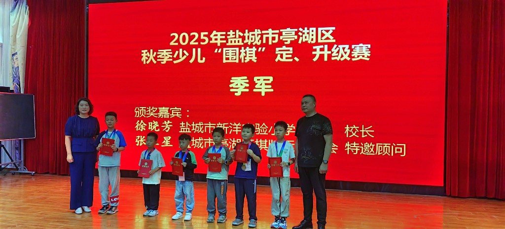 本报讯(记者赵亮)10月7日下午,为期两天的2025年盐城秋季少儿围棋定、升段(级)比赛拉开帷幕。赛事吸引了来自全市31家围棋培训机构及个人棋手近800人报名参赛,他们齐聚一堂,在黑白棋盘间展开智慧博弈,为国庆中秋假期增添了一抹独特的文化亮色。