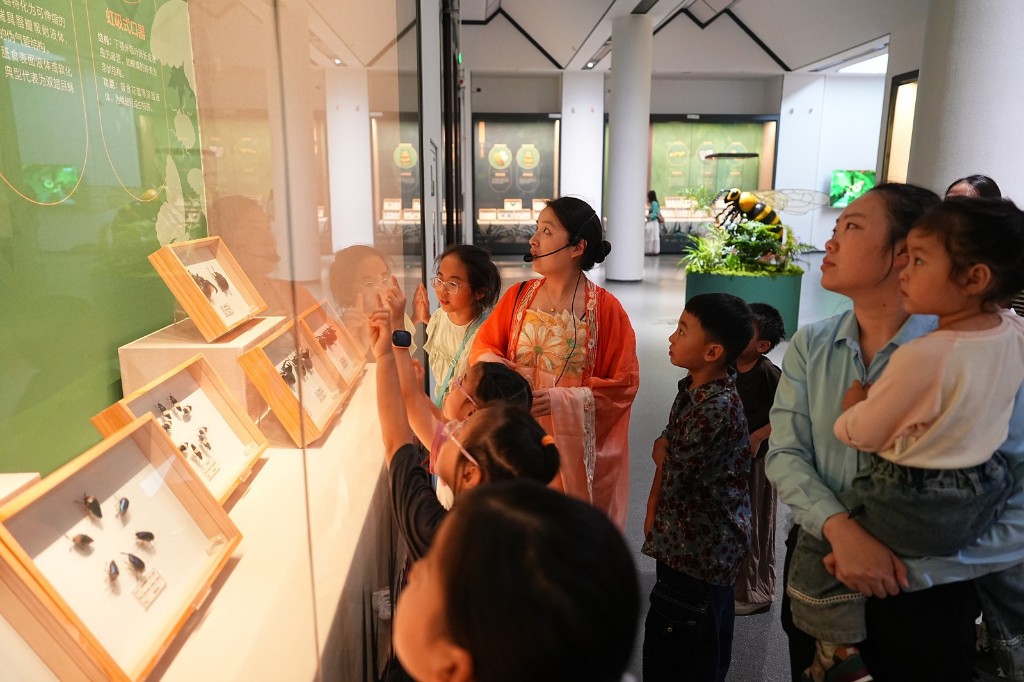 活动期间,博物馆内不时上演“祖国你好——主题舞蹈快闪”。“文物快闪”“民俗快闪”“非遗快闪”与“中秋节日歌舞”轮番登场,演员们以灵动舞姿、鲜活演绎,传递对历史文化的传承之心、对祖国的热爱之情及对美好生活的憧憬之意,为游客带来意外的文化惊喜。此外,该馆还推出“陶器彩绘”“标本制作”“中秋花灯”等一系列丰富多彩的社教活动,专业老师现场指导,游客亲手绘制陶器、制作昆虫标本、制作中秋花灯,在动手实践中感受传统工艺的魅力,解锁传统文化新技能。