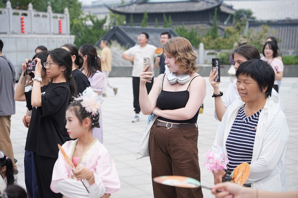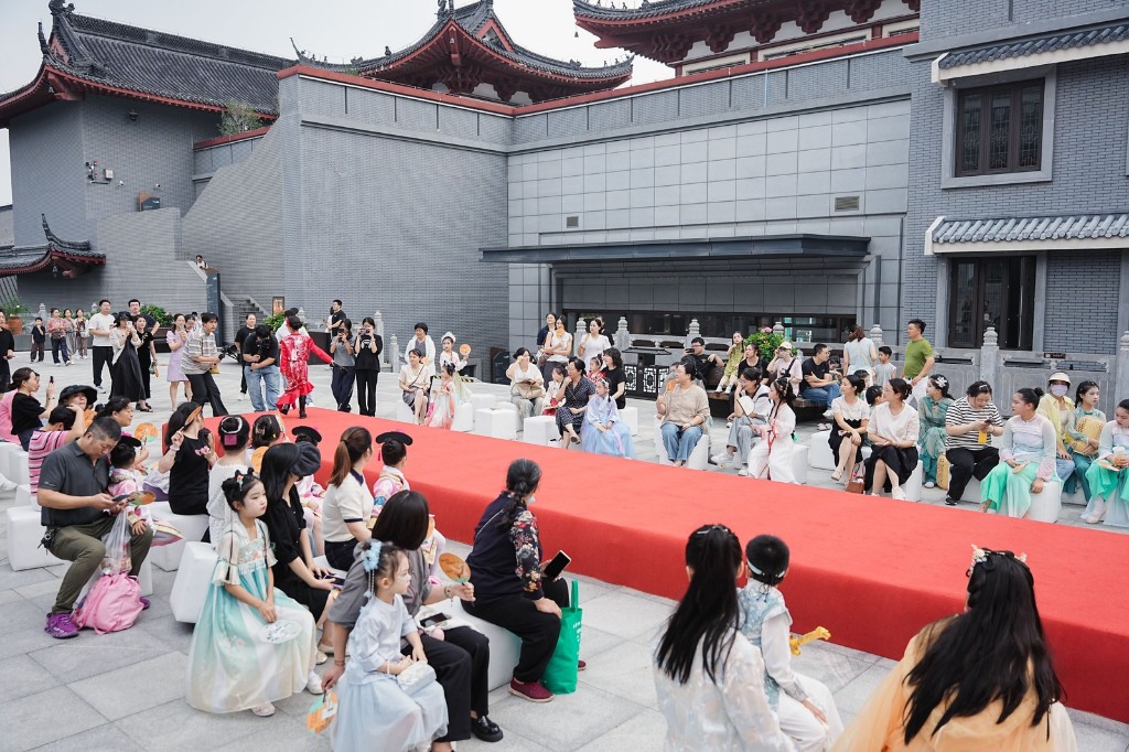 10月6日中秋节当天,博物馆内广场举办“月华霓裳・家国共团圆盛典——青少年汉服秀”。这场展演活动,以改良款汉服为主开展青少年汉服、亲子家庭汉服走秀展演,呈现汉服文化和国潮文化的独特魅力。现场还设有汉服体验区,游客可挑选心仪服饰试穿,拍摄国风影像,定位中秋月圆美好瞬间。