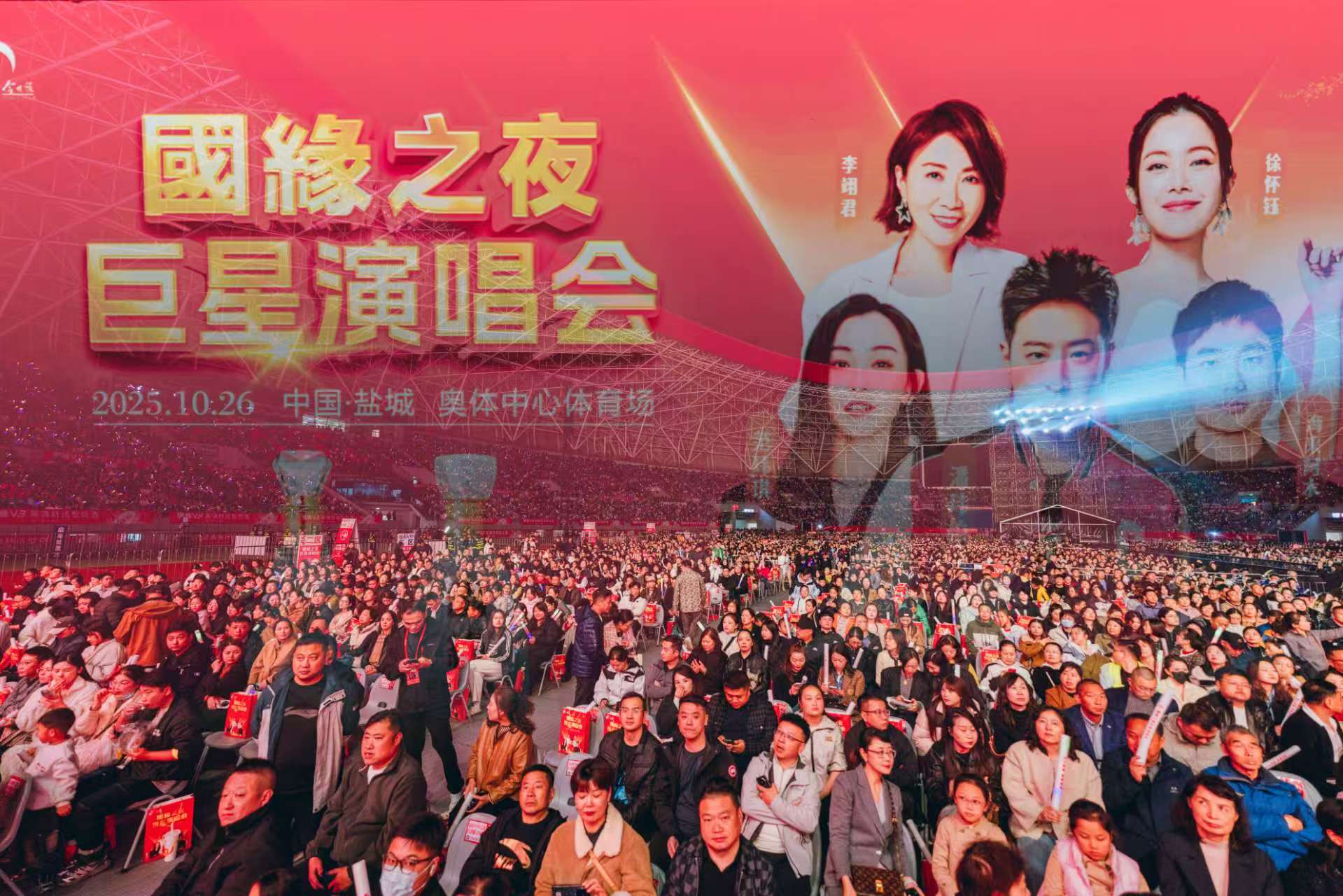 本报讯(记者 安志鹏)10月26日晚,“国缘之夜”巨星演唱会在盐城奥体中心重磅开唱。潘玮柏、海来阿木、范玮琪、徐怀钰、李翊君等五位实力歌手联袂登台,以三个小时的金曲联唱为3.3万余名观众献上一场精彩纷呈的视听盛宴。