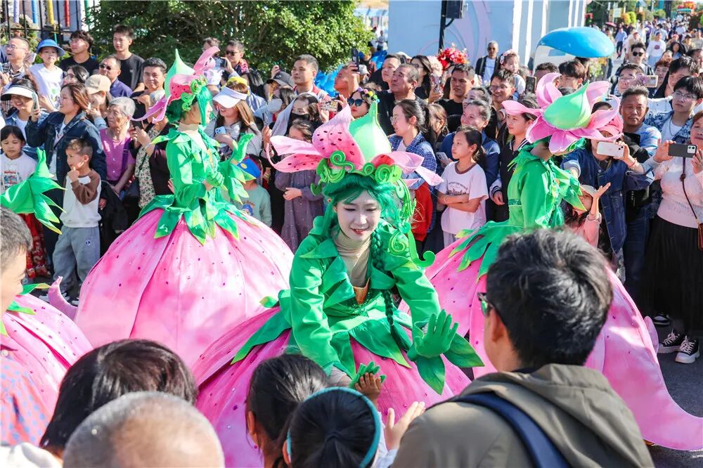除了沉浸式赏花,多元游玩项目让欢乐持续升级:“花梦奇旅”大巡游穿梭花海,编织出梦幻秋日童话;主舞台、迎宾石前、创意舞台上,音乐与欢笑随风飘扬,氛围感拉满;花海云无动力主题乐园及动物营地内,孩子们在泥土芬芳中尽情探索自然乐趣;威汀广场上,游客们沐浴阳光享受惬意野餐,企业团建活动热闹开展,同事变战友、干群同欢乐,欢声笑语不断;只有爱戏剧幻城也迎来大批为爱而来的游客,在光影流转中感受情怀与浪漫。