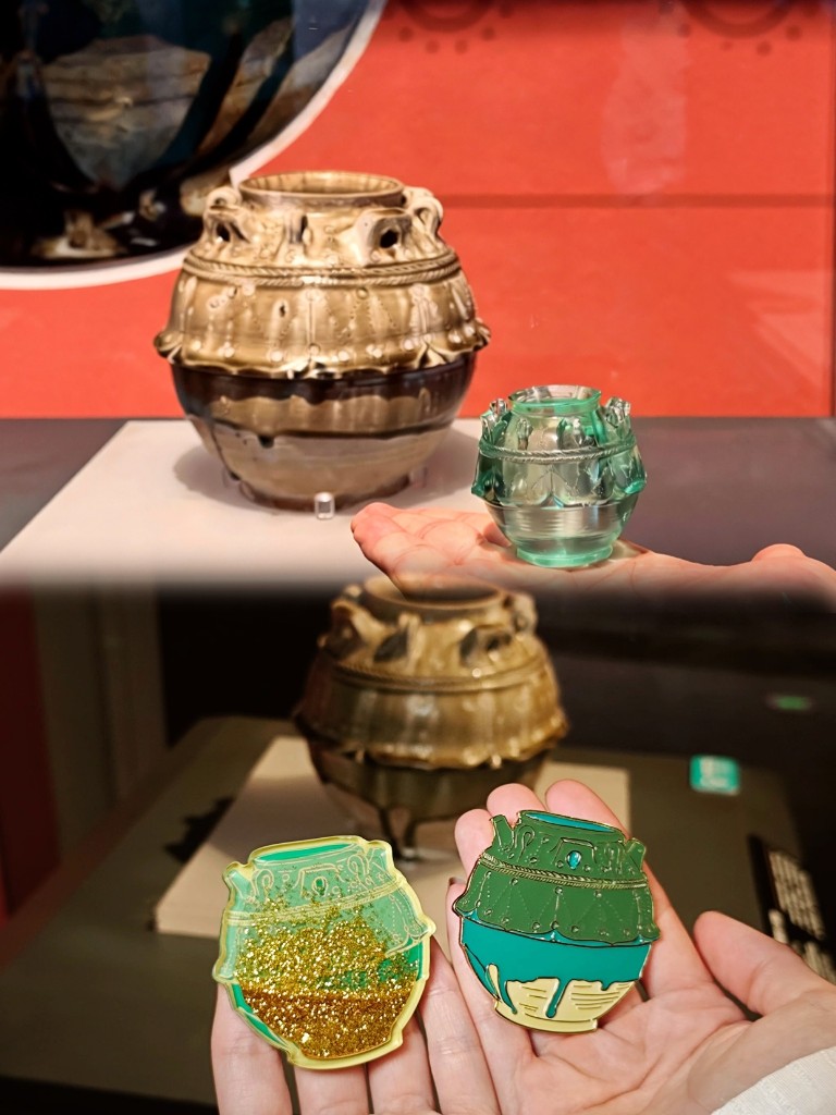 在线上,通过直播导览、短视频科普、文创故事专栏及全媒体矩阵传播,打破了时空限制,立体化讲述文创背后的故事。此前,盐博巧妙组合“南博小粉炉”与“盐博小青罐”组成“CP”,引发了广泛关注与讨论;发起的“#盐博文物带回家”等线上话题,则让文物以更轻盈、俏皮的姿态“出圈”,走进公众视野。每一件文创产品,都是一颗文化的种子,在使用中生根,在分享中发芽,在传播的涟漪中绽放。