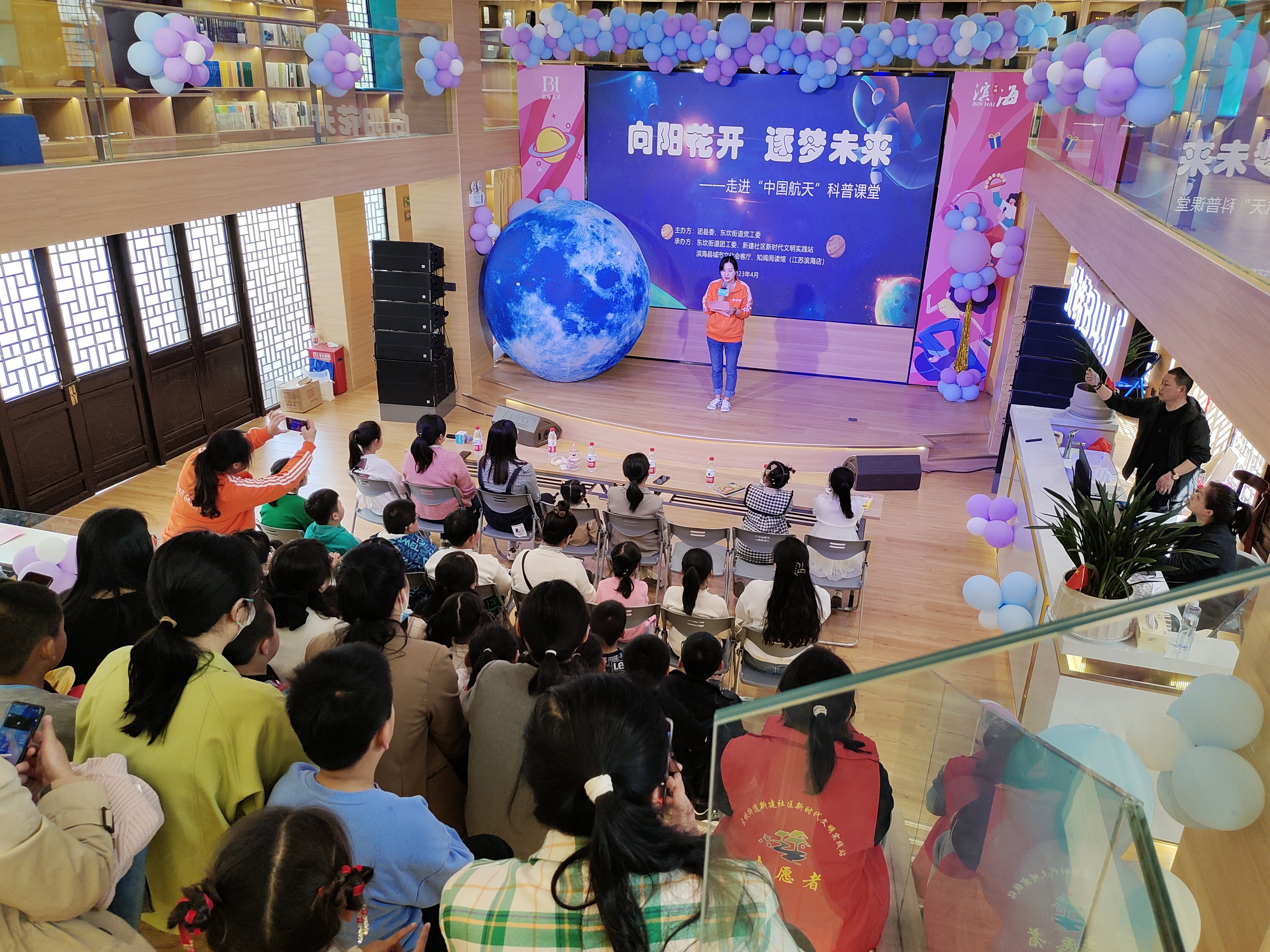 为激发青少年崇尚科学、探索未知、敢于创新的热情,在“中国航天日”到来之际,滨海团县委、东坎街道党工委、团工委、新建社区新时代文明实践站、滨海县城市文化会客厅、知阅读馆共同举办了“向阳花开·逐梦未来”——走进“中国航天”科普课堂活动。