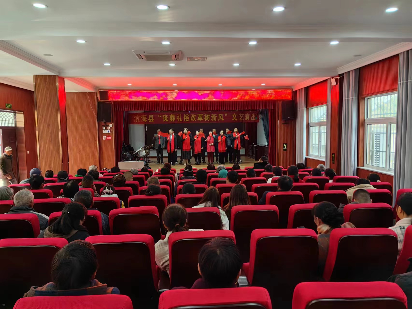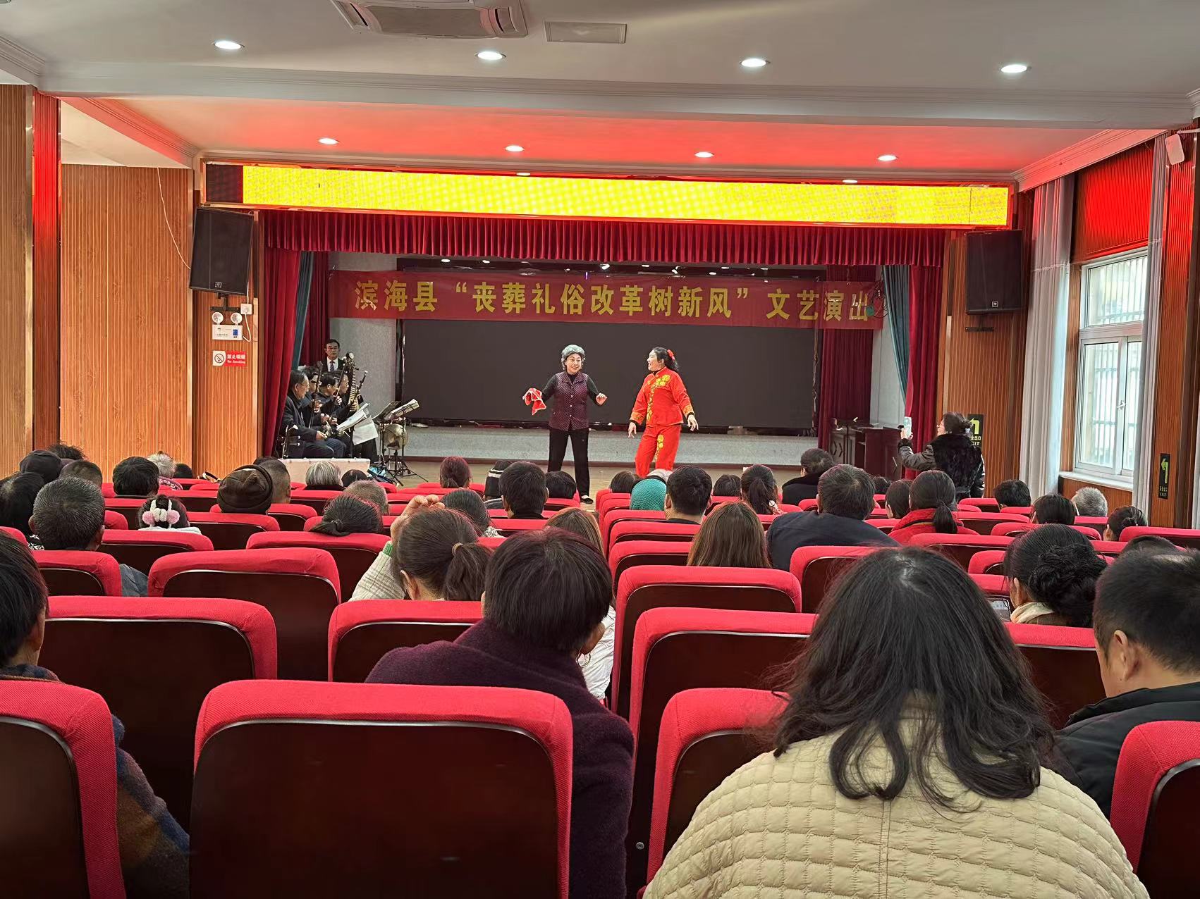 为教育、引导广大干群节俭办丧、文明治丧、生态安葬、绿色祭扫、进一步推进丧葬习俗改革,11月16日,滨海县丧葬礼俗改革文艺汇演在陈涛镇政府礼堂举行,镇村干部、村民群众200多人到现场观看了演出。