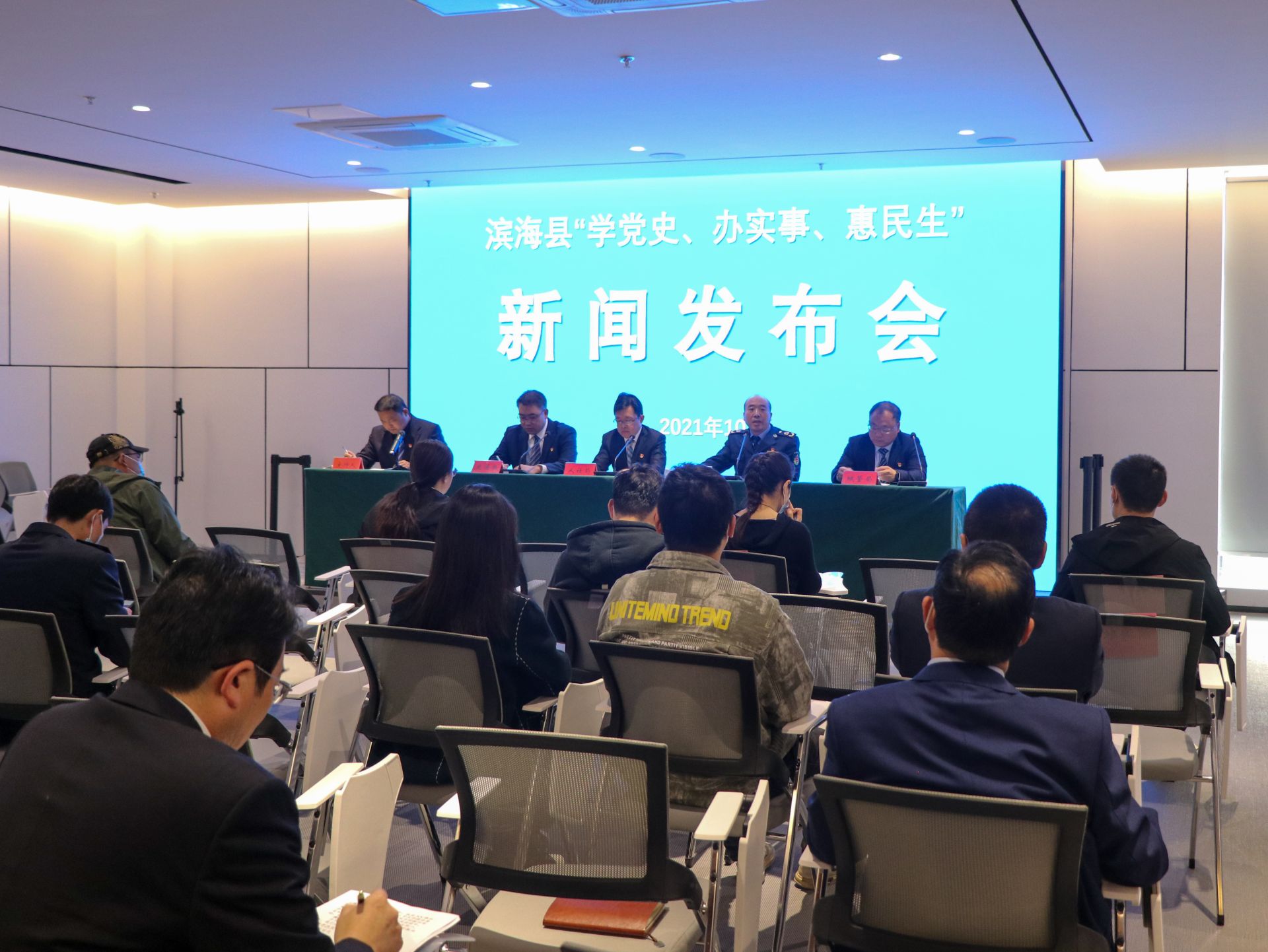 从2021年10月起,滨海县委党史学习教育领导小组办公室、县委宣传部组织开展“学党史、办实事、惠民生”系列主题新闻发布会。10月22日,滨海县城管局、人社局、交通运输局和市场监管局相关负责人出席首场新闻发布会,介绍办实事的重要举措、创新做法、工作成效以及下一步打算等情况,并回答记者提问。