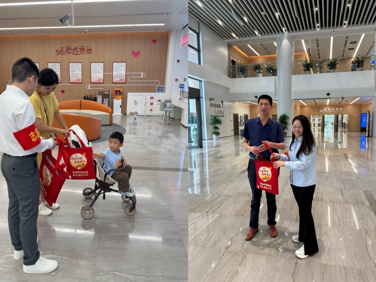 活动的实践环节聚焦志愿服务。参与活动的青年干部们精神饱满,分组行动,向来往的办事群众发放精心准备的宣传帆布包,并送上诚挚的节日祝福。他们耐心解答群众疑问,宣传数据惠民政策,将便捷与温暖送到群众手中。现场气氛温馨融洽,展现了滨海县数据局亲民、为民、惠民的优良作风,赢得了大家的一致好评。