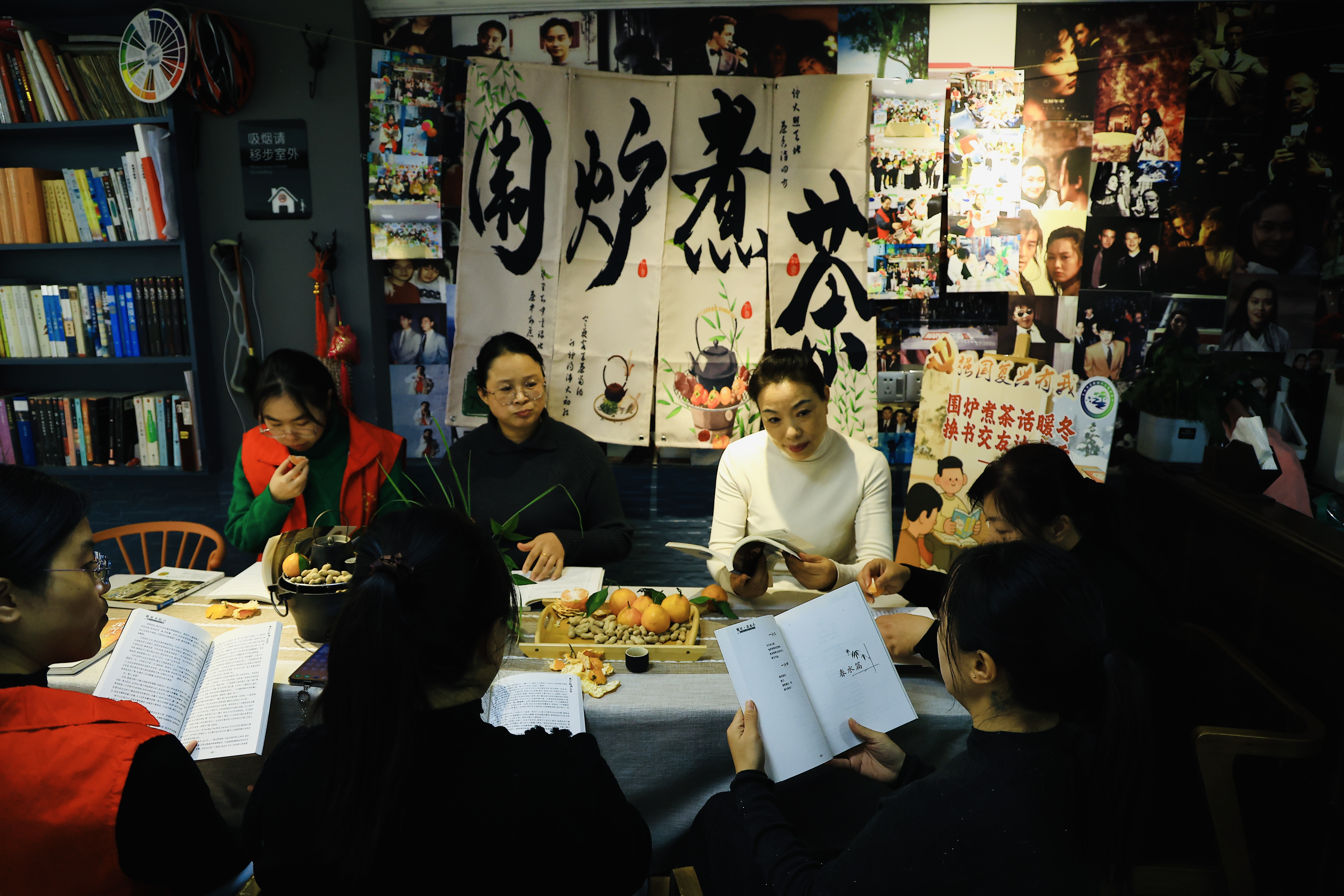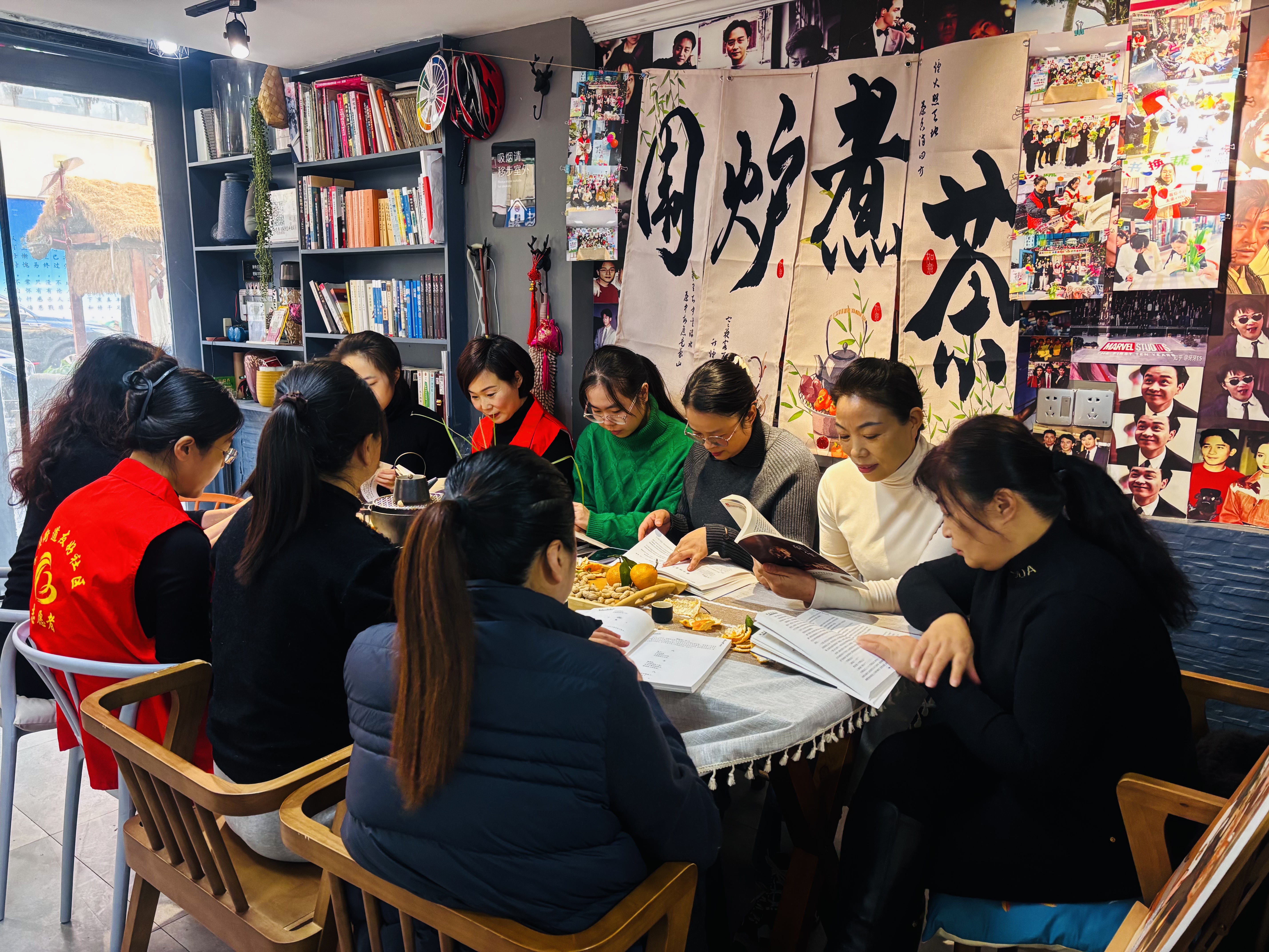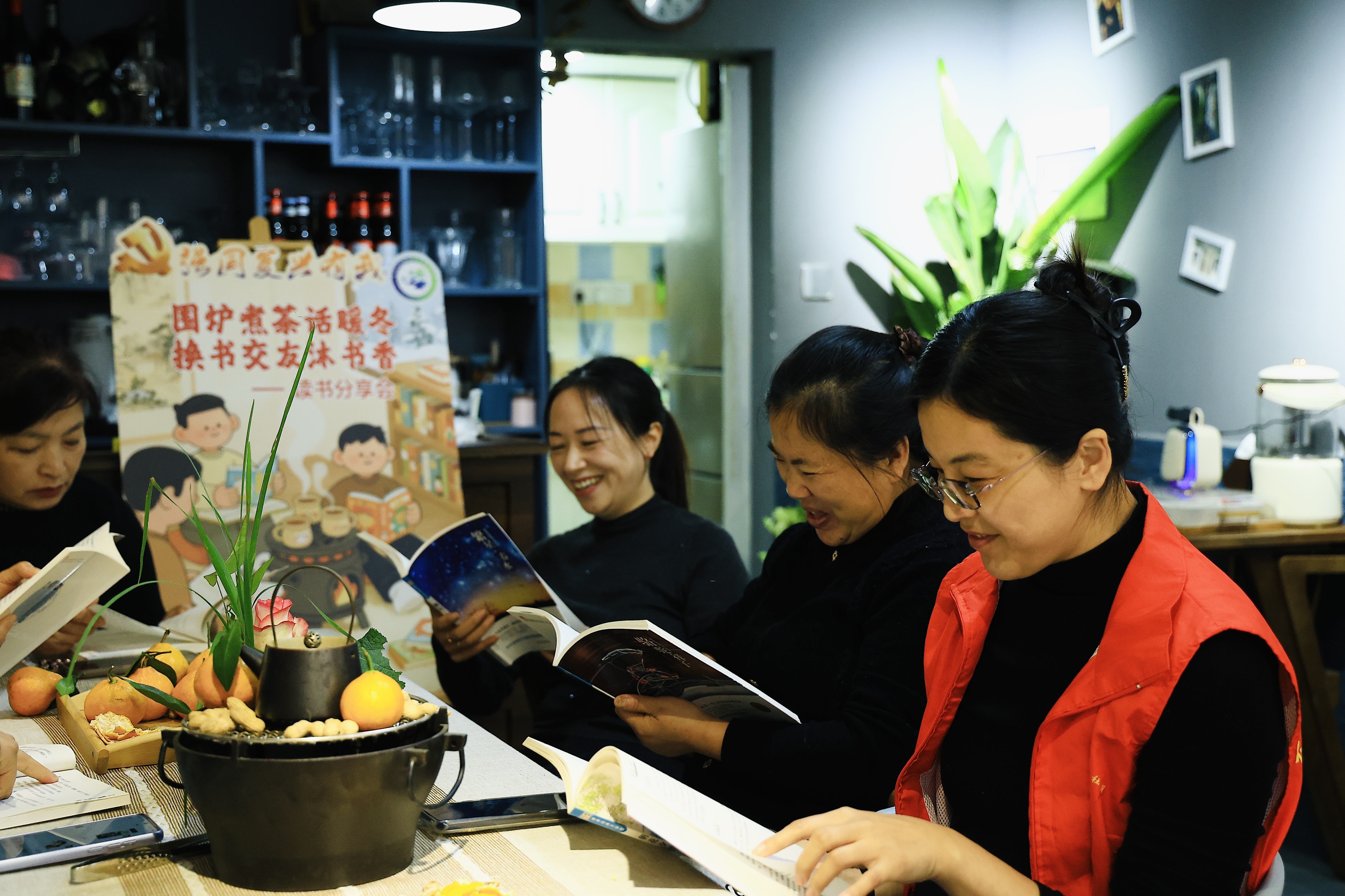 本次读书分享会以“以书为媒、以茶会友”为主线,打破传统阅读活动形式限制,将温馨惬意的围炉煮茶与深度交流的读书分享有机结合。活动现场热茶氤氲、点心齐备,暖冬的烟火气让大家倍感放松。读书分享环节,大家手捧书籍、品茗畅谈:既有党员代表分享阅读红色经典的感悟,回顾革命岁月的峥嵘历程,传递初心使命的精神力量;也有家长分享亲子阅读的经验,讲述陪伴孩子在书籍中探索世界的温馨故事;还有青年朋友主动登台,朗读自己喜爱的散文片段,声音里满是对文字的热爱。现场交流氛围热烈而温馨,不时响起阵阵掌声,寒冷的冬日因这份书香雅韵更显温暖。