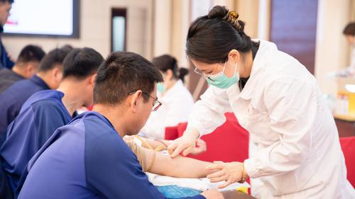 3月12日,滨海港经济开发区组织辖区领导干部和企业职工,在沿海工业园开展无偿献血活动。活动现场,430余名爱心人士踊跃挽袖献血,以实际行动传递温暖。(刘伟 记者 张一轩)