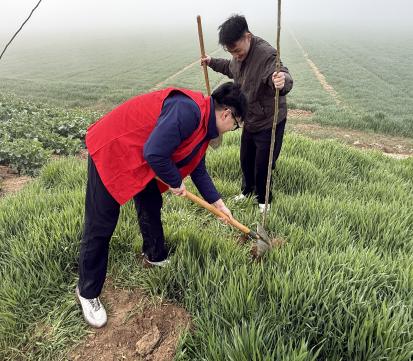 活动当天清晨,薄雾笼罩田野,空气湿润清新。网格员们身穿红马甲,早早抵达植树现场。雾气朦胧中,大家分工明确,配合默契:挥锹挖坑、扶苗正干、培土围堰、提水浇灌,每个环节都一丝不苟、衔接有序。虽然视线略有受阻,但植绿热情丝毫未减。汗水浸润泥土,与晨雾交织成一幅动人的劳动画卷。短短一上午,原本空旷的田埂边便挺立起一株株新植树苗,整齐成行,在雾色中勾勒出生机盎然的绿色轮廓。