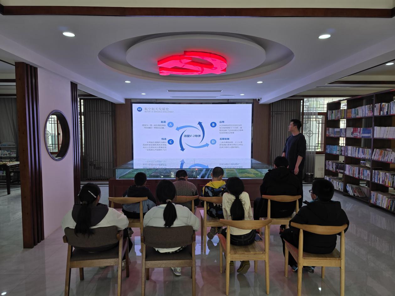 随后,活动进入航空航天知识科普环节。志愿者通过精心制作的PPT,以直观生动的方式为小朋友们开启了探索宇宙的大门。PPT围绕航天基础知识、中国航天发展历程、航天员太空生活等内容展开,详细讲解了太空中的微重力、真空环境,生动科普了卫星、载人航天器、无人探测器等不同航天器的功能和作用,让孩子们了解到中国航天事业从起步到领先世界的辉煌成就。孩子们踊跃举手、积极回应,在轻松愉快的氛围中学习航天知识,播下了崇尚科学、探索未知、逐梦航天的种子。