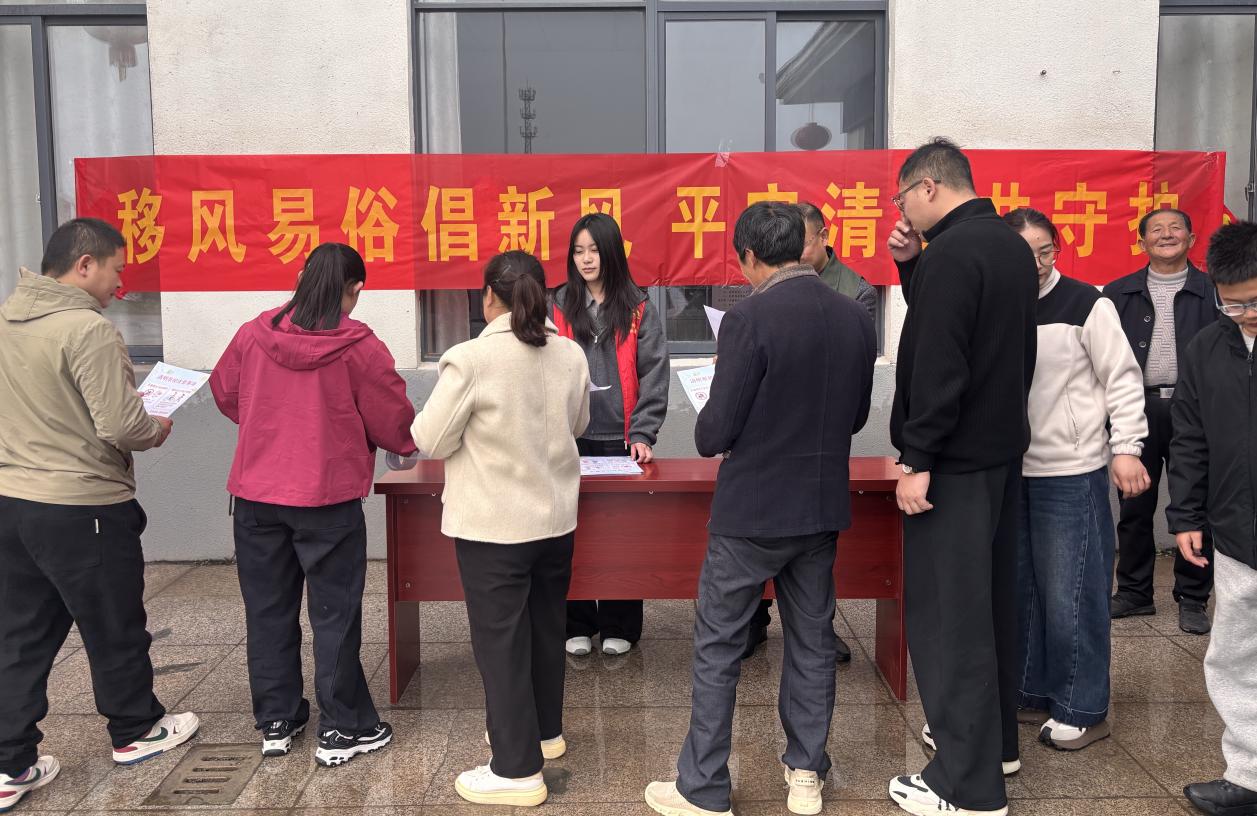 随后,志愿者结合本地清明习俗,用通俗易懂的语言向村民们讲解清明节的由来、传统习俗内涵以及移风易俗的现实意义,号召大家从自身做起,破陈规、除陋习,争做文明新风的倡导者和实践者。
