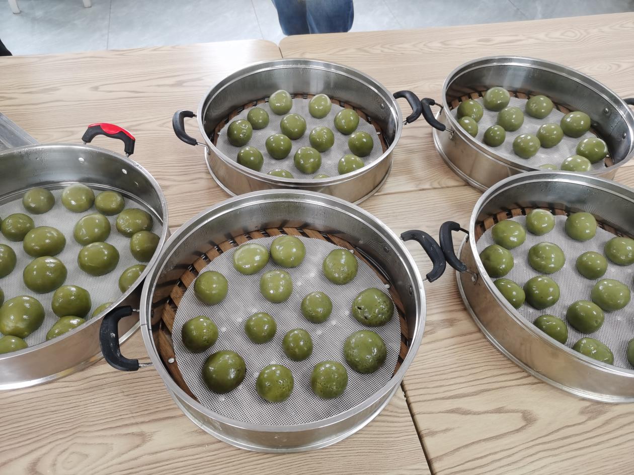 工作人员提前准备了艾草汁、糯米粉、豆沙、芝麻、紫薯泥等多种食材,与大家一同动手包制青团。残疾人朋友们兴致勃勃、神情专注,尽管动作略显生疏,做出的青团形状不一,但每个都包裹着真挚的心意。大家相互指点、笑语盈盈,活动室里充满温暖融洽的气氛。不一会儿,青绿可爱的青团便摆满了蒸笼。上锅蒸熟后,热气袅袅、清香扑鼻的青团新鲜出炉。工作人员将温热的青团分到学员手中,大家细细品尝自己亲手制作的美食,软糯香甜的滋味在口中化开,脸上洋溢出满满的成就感与幸福,纷纷感叹青团好吃、活动暖心又有意义。