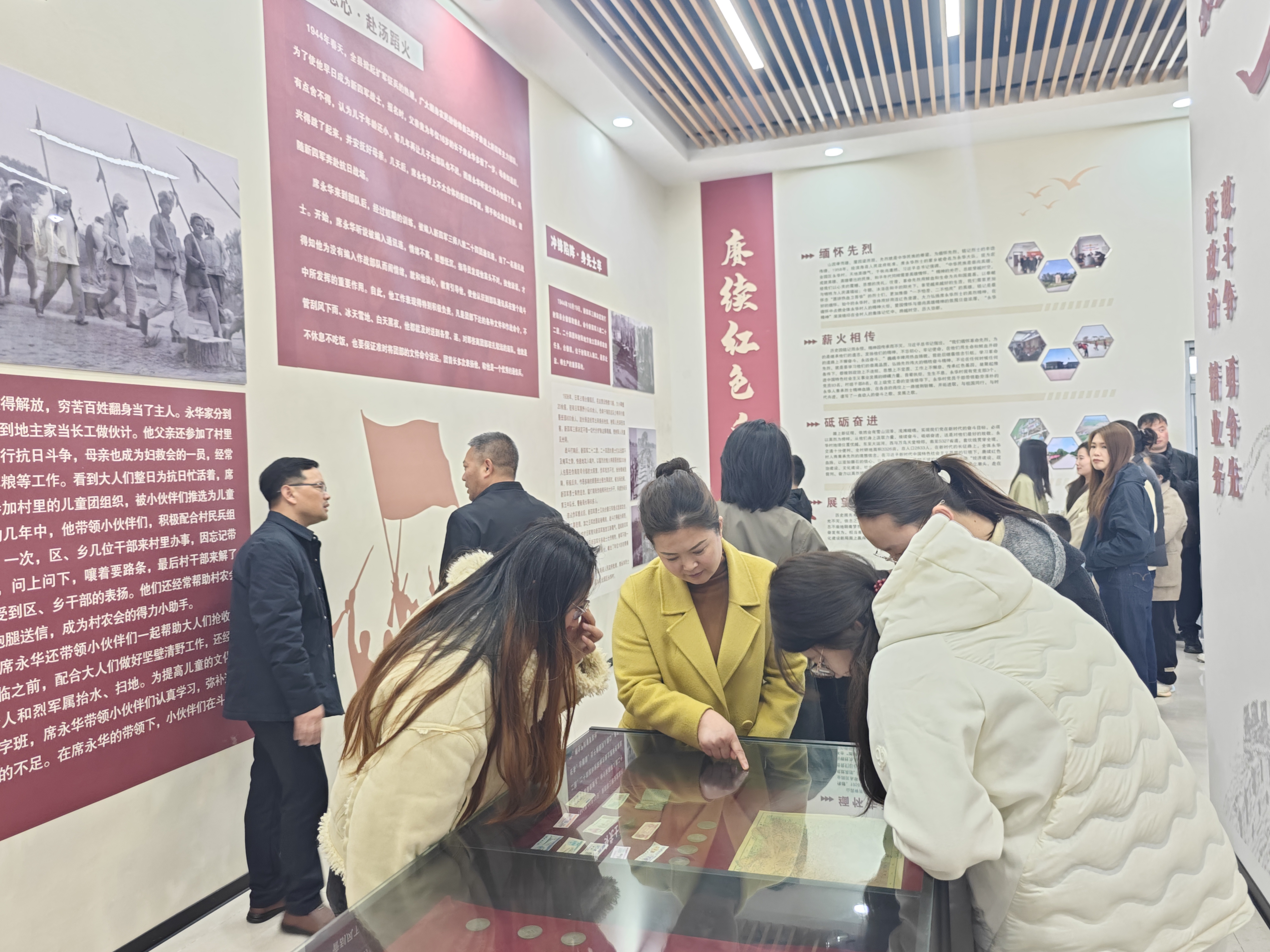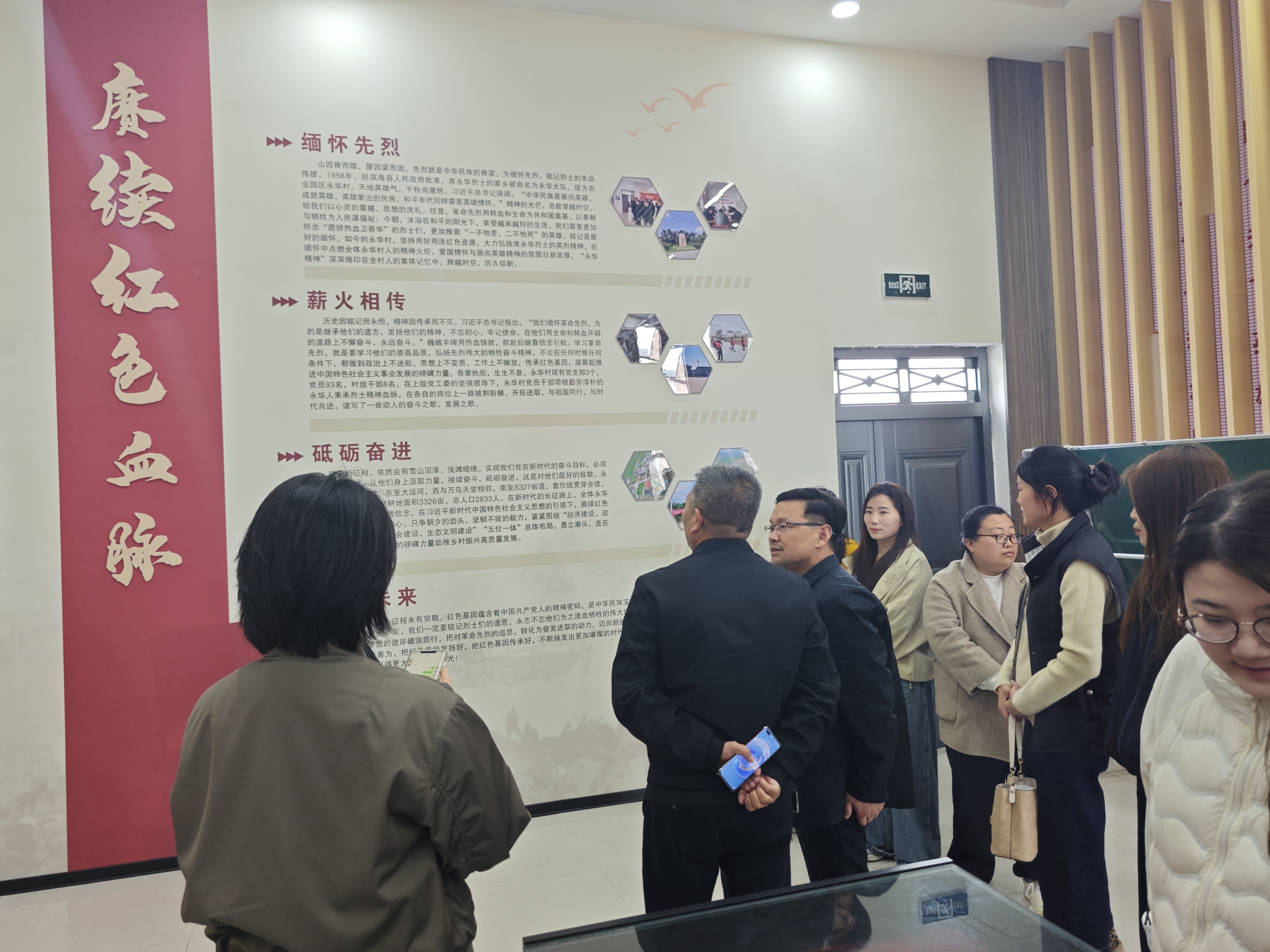 活动以“初心课堂”研学开篇,拉开红色传承序幕。永华村党支部书记带领全体人员走进永华村初心课堂,通过实物展示、图文讲解、故事讲述等形式,深入缅怀席永华烈士的光辉一生。从烈士少年时期的家国情怀,到投身革命的英勇事迹,再到为民族解放事业壮烈牺牲的崇高精神,每一段讲述都饱含深情,每一张照片都承载初心。大家驻足聆听、驻足感悟,深刻领会永华村积淀深厚的红色文化底蕴,真切感受英烈精神跨越时空的强大力量,进一步坚定了传承红色基因、建设美好家乡的信念。