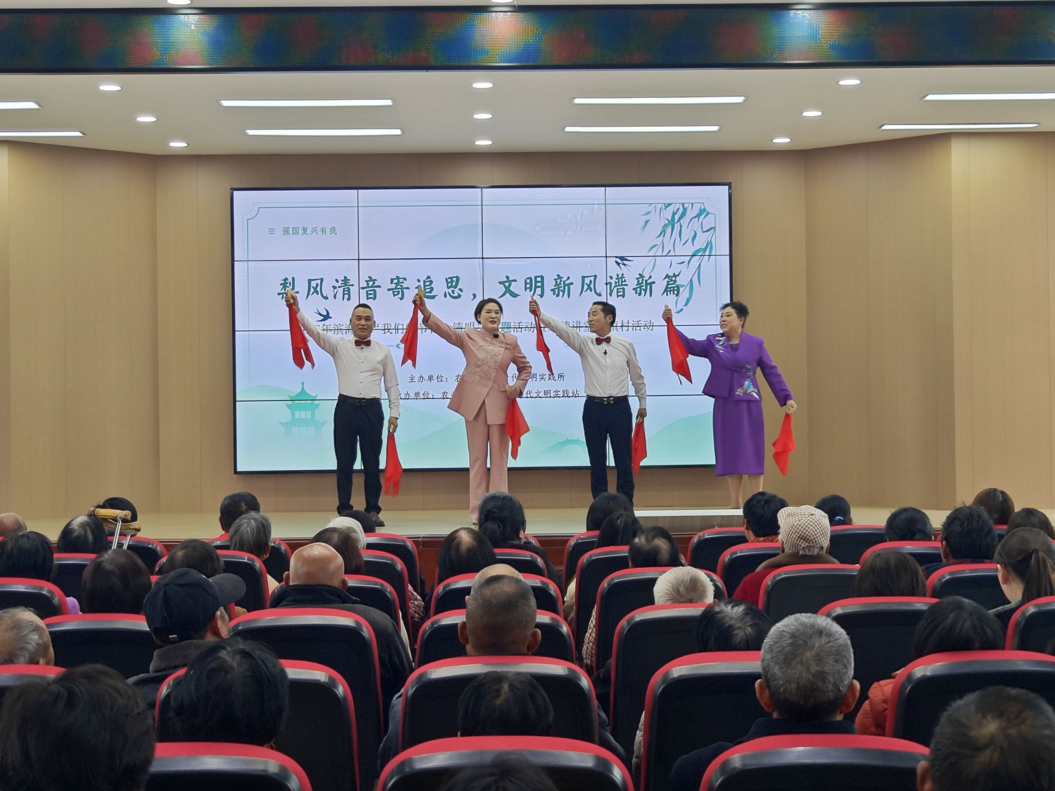 春回大地,梨风送暖;清音袅袅,追思绵长。为传承中华优秀传统文化,弘扬红色革命精神,深化移风易俗实践,4月3日下午,滨海县“我们的节日·清明”主题活动暨道德讲堂进镇村活动在县农业园区永华村新时代文明实践站温情举行。来自农业园区各村干部代表与村民代表共100余人齐聚一堂,以“梨风清音”寄哀思、传精神,以“文明新风”润乡土、启新程,在春日的氛围中共赴一场精神与文化的洗礼。