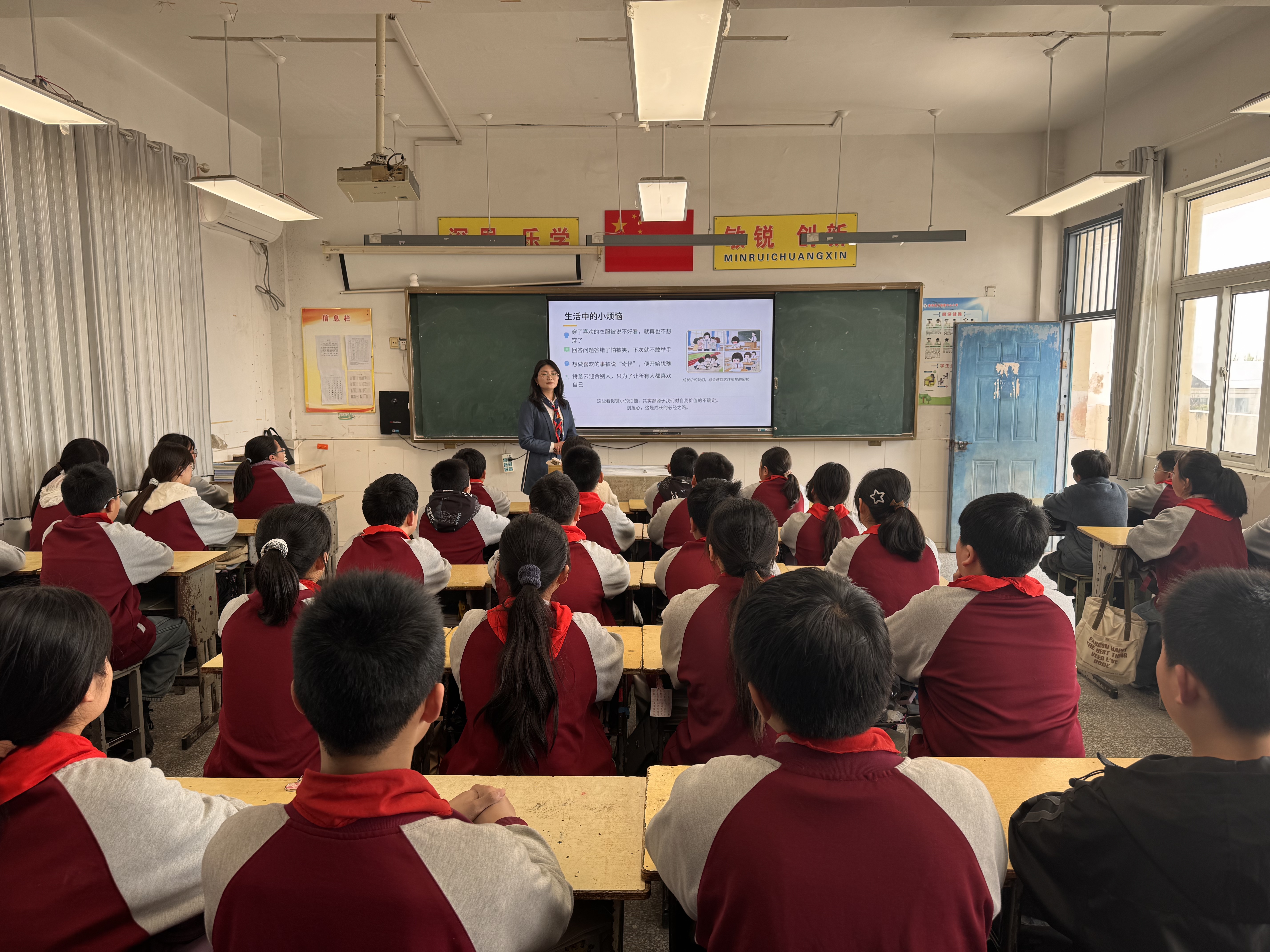 活动核心环节,该镇青少年心理特邀顾问、心理健康指导师给学生带来心理赋能课堂。以学生学习的书本知识为载体,用温柔生动的语言讲述那些不惧困难、勇敢追梦、战胜自我的成长故事,层层深入引导学生解读故事内涵,帮助大家正确认识情绪、接纳自我,懂得成长路上挫折与胆怯并不可怕,要坚守信念、勇敢直面困难,努力成为自己心中的英雄。专业的心理疏导与正向赋能,润物细无声地融入课堂,有效帮助学生提升情绪管理能力,塑造强大内心。