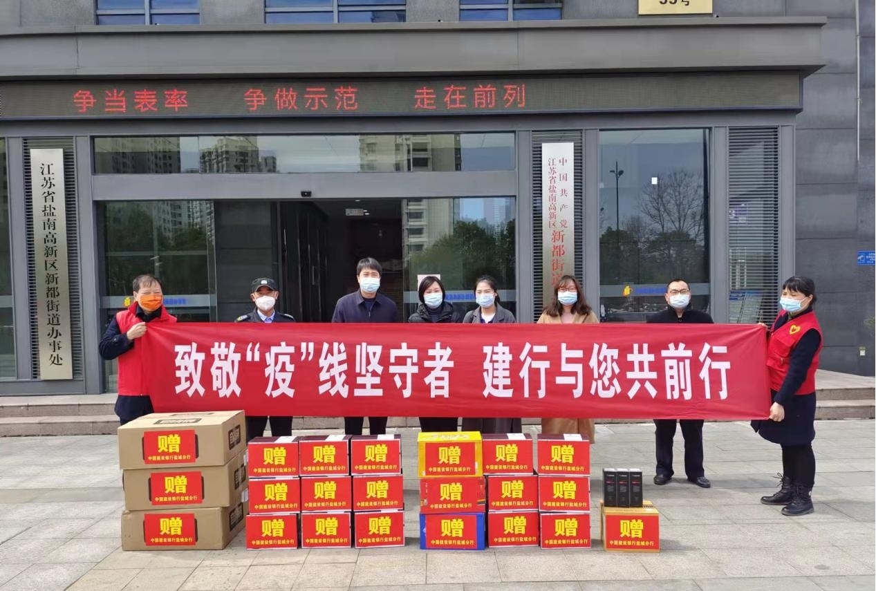 近日,中国建设银行盐城分行城南支行为新都街道疫情防控工作者捐助防疫保障物资,助力街道疫情防控工作。