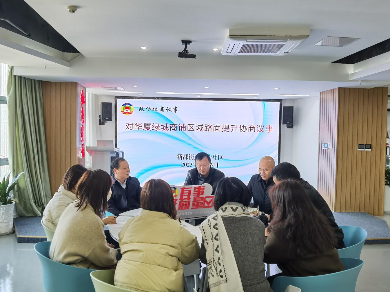 为更好地服务群众、畅通居民回家“最后一公里”,满足居民对居住环境、交通出行等方面的期望与诉求,近日,盐南高新区新都街道政协、八营社区组织社区、施工方、党员、业主等多方代表在“有事好商量”协商议事室共同商讨华厦绿城商铺区域门前路面提升改造事宜。