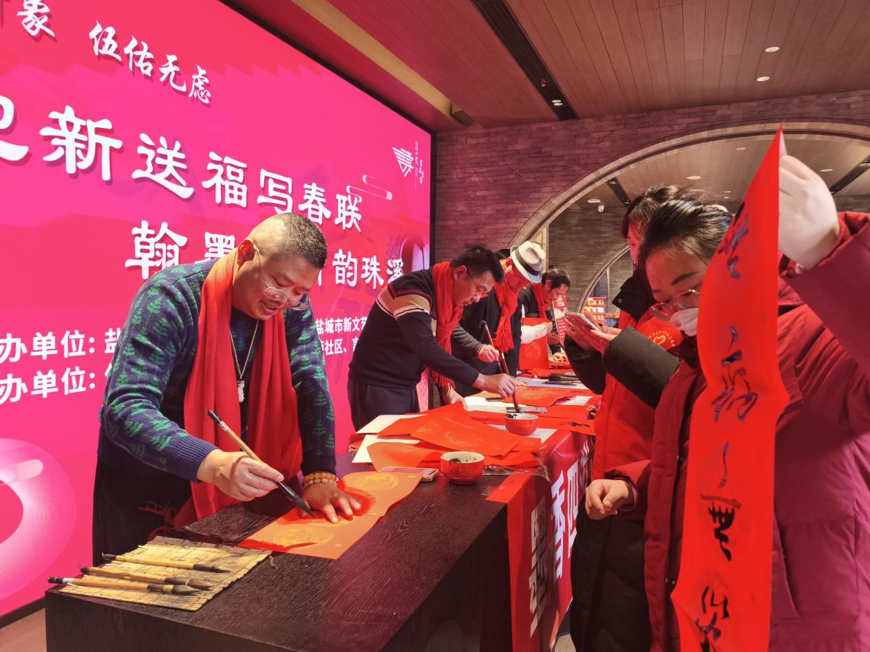 本报讯1月11日,盐南高新区伍佑街道联合盐城市新文艺群体联合会走进珠溪古镇,共同开展“迎新送福写春联翰墨传情韵珠溪”志愿服务公益活动。