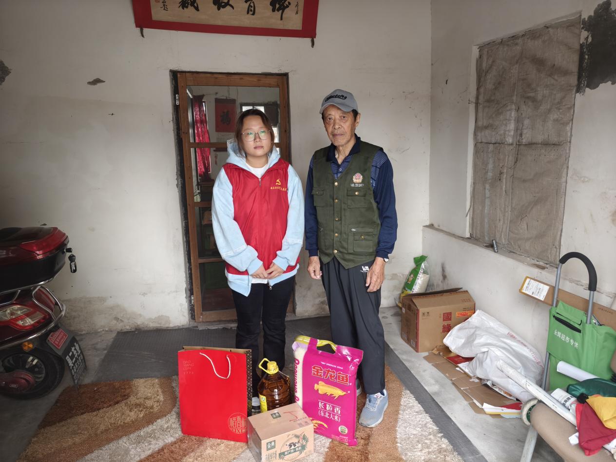 活动前期,社区工作人员通过入户摸排与档案梳理,精准确定22户慰问对象,涵盖独居老人、残障家庭及低收入群体等,确保帮扶资源精准触达需求端。同时,社区提前采购慰问物资,包含月饼、牛奶、大米、食用油等生活必需品,兼顾节日氛围的同时保障了实用性。活动期间,社区工作人员与志愿者分组入户,以“拉家常”的方式与老人亲切交流,详细询问其身体状况、生活难题及用药情况,耐心倾听诉求并做好记录。针对行动不便的老人,志愿者主动帮忙打扫房间、整理衣物、擦拭家具,将慰问从“送物资”延伸至“办实事”。工作人员及志愿者还向困难家庭讲解社区最新帮扶政策,告知医疗救助、养老服务等申请渠道,让关怀更有温度与深度。
