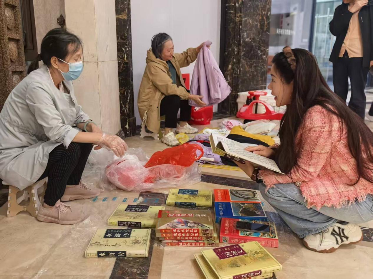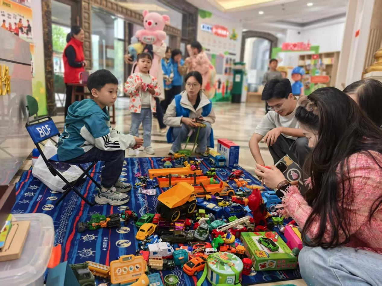 “暖心驿站”到“红领智治”文化墙的过道,摇身一变成为大小朋友快乐加倍的“跳蚤”集市,既没有繁琐的标签价格,也没有精心设计的大型海报,只有摊位上洗干净的毛绒玩具、被细心保护的可爱手办和各类装满趣事的书籍等等。现场没有讨价还价,只有旧物换新主的欣喜。现场摊主小小张对着小买家们骄傲的说:“这是我平时帮助爸爸妈妈做家务、认真学习得来的积分战利品,在家里都用水一遍遍的洗过了,希望你们买回去能够珍惜它们。”活动现场温情又热闹,社区用一场烟火气的邻里活动,让孝道、争先、环保等美德,在社区沃土中自然生长。