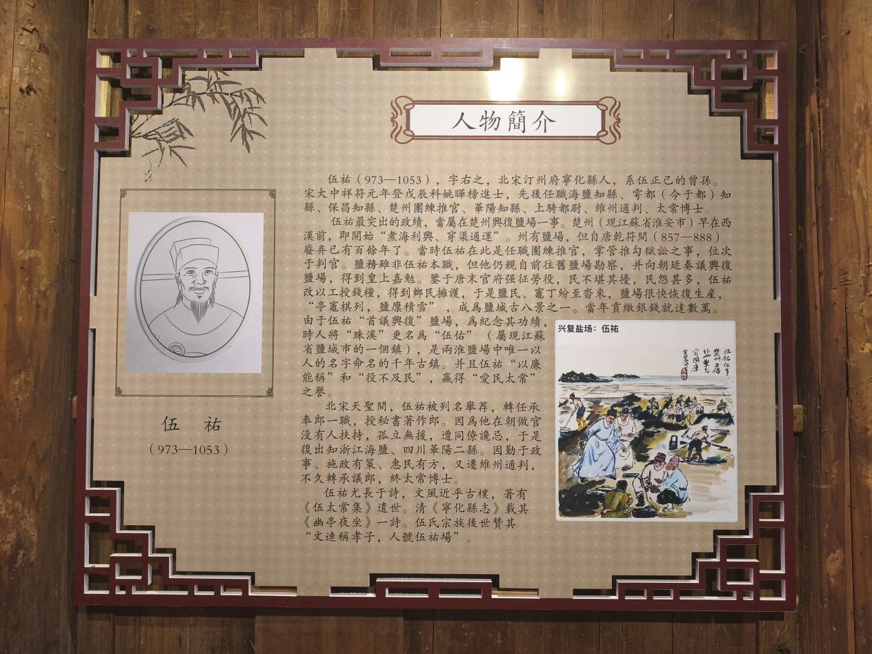 走进水门古巷,巷中遍布具有典型客家特色的明清时期建筑,一砖一瓦尽显古街特色与客家韵味,伍正己纪念堂就坐落于此。伍正己是唐末汀州府第一位进士,官至御史中丞。在宦官专权的年代,他毅然辞官回乡,培养了大批人才。在他的表率下,宁化英才辈出,人文蔚起,伍姓考取功名者有131人,七代32进士的佳话广为传颂,成为千古美谈。据伍氏世系总图显示,伍祐是其曾孙,宋大中祥符元年进士。据史料记载:伍祐,字佑之,以勤政干练、爱民清廉著称。迁楚州团练推官时,州有盐场久废,祐至,著义兴复,役不及民,甫期而就,岁入上供缗钱数万。被后世赞其“文连称孝子,人号伍祐场”。