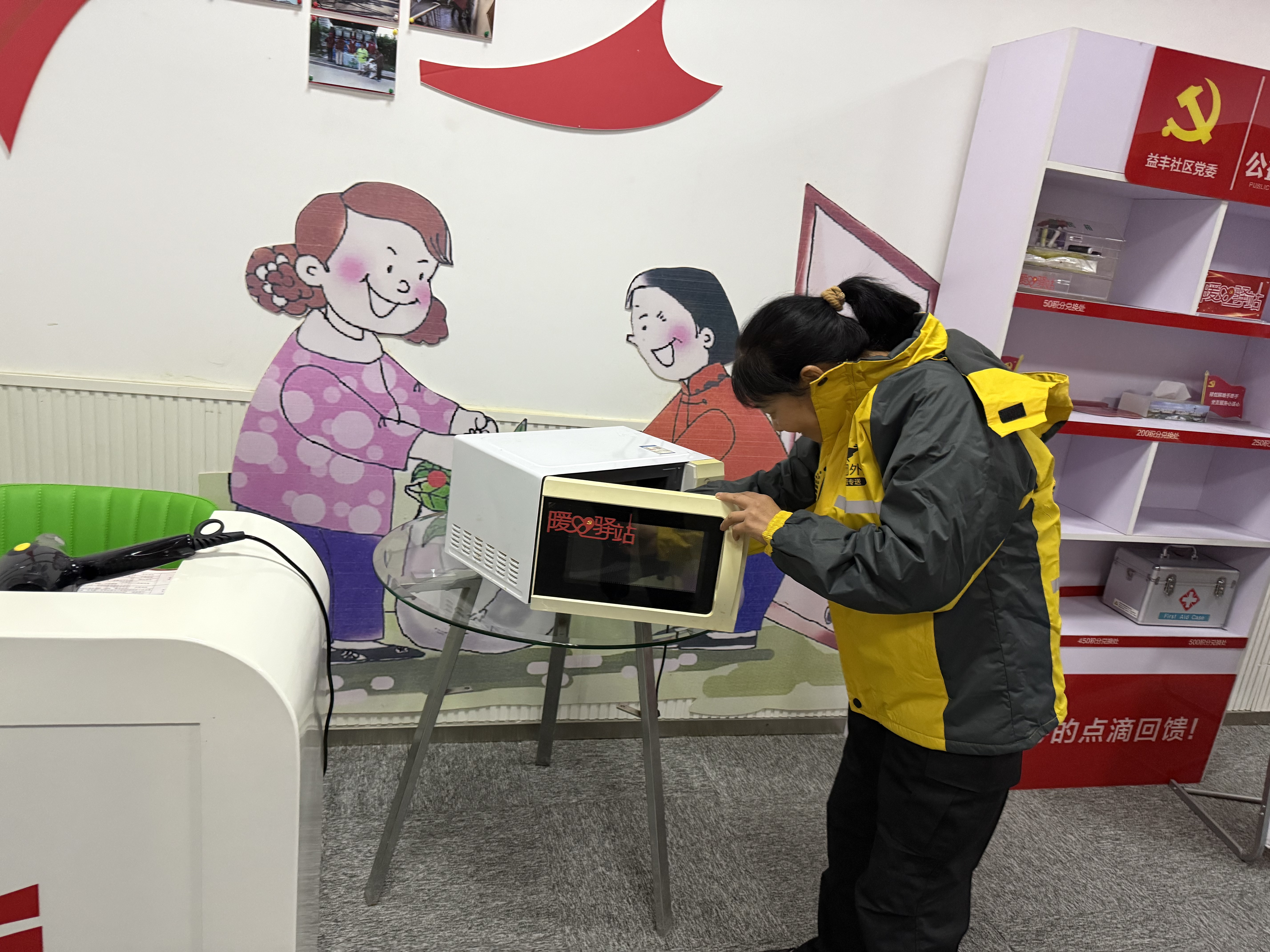 益丰社区新就业群体基层服务站点负责人介绍,这个“暖心驿站”正是街道和社区专门为那些辛勤的劳动者打造的一处温馨港湾。这里不仅配备了免费的微波炉,还提供全天热水、多型号充电插座、基础应急药箱和舒适的休息座椅等物品,切实解决了新就业群体“吃饭难、喝水难、休息难”的现实问题。