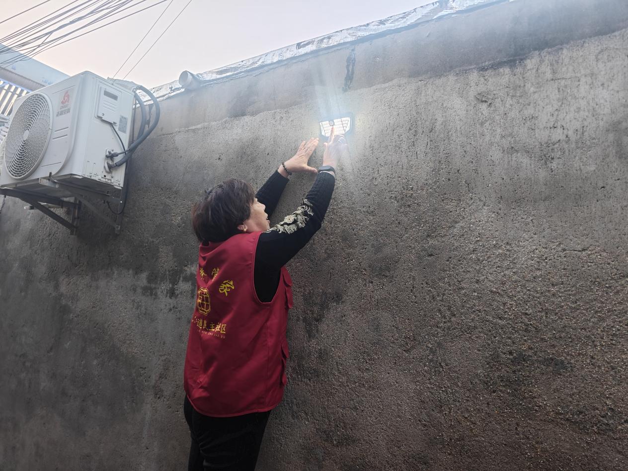 重阳节期间,民主社区的“小巷管”家志愿服务队带着一批崭新的太阳能感应灯,穿梭于各条背街小巷,他们细心勘察位置,在老人家门口、巷道的转角处精心安装,为这个充满爱的节日又增添了一份独特而温暖。这不仅是一盏路灯,更是对长者无声的守护与关怀。“这下好了,晚上出门再也不怕黑了,心里亮堂得很!”每当夜幕降临,一盏盏暖白色的灯光便会随着居民的脚步声悄然亮起,照亮了每一段回家的路,赢得全体居民,特别是老年人的一致赞扬。