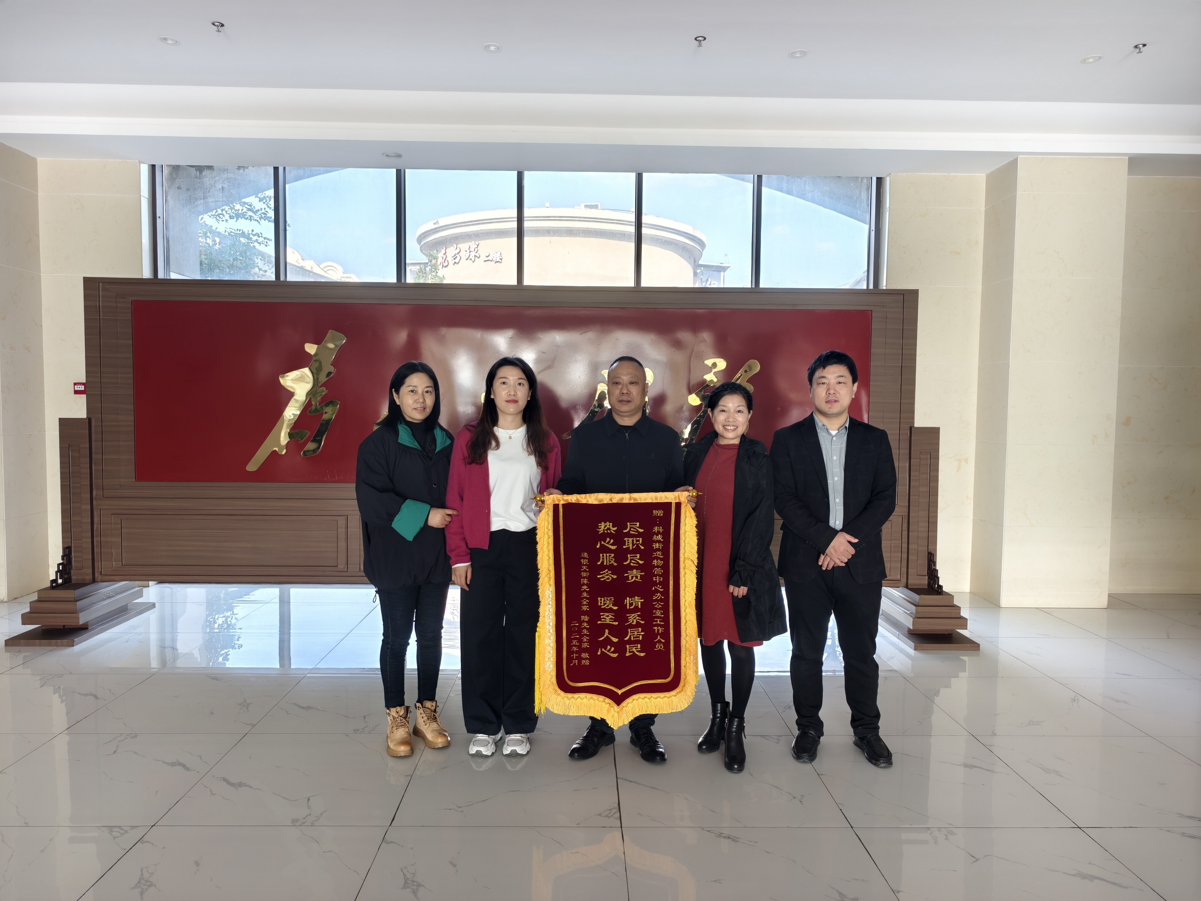“从我们反映漏水,到定好方案,这才几天啊?你们办事又快又贴心。送一面锦旗给你们,表示我们业主的心意!”10月31日上午,通银天御小区的一位业主来到盐南高新区科城街道物管中心,将写有“尽心尽职情系居民热心服务暖至人心”的锦旗送给工作人员以表感谢。