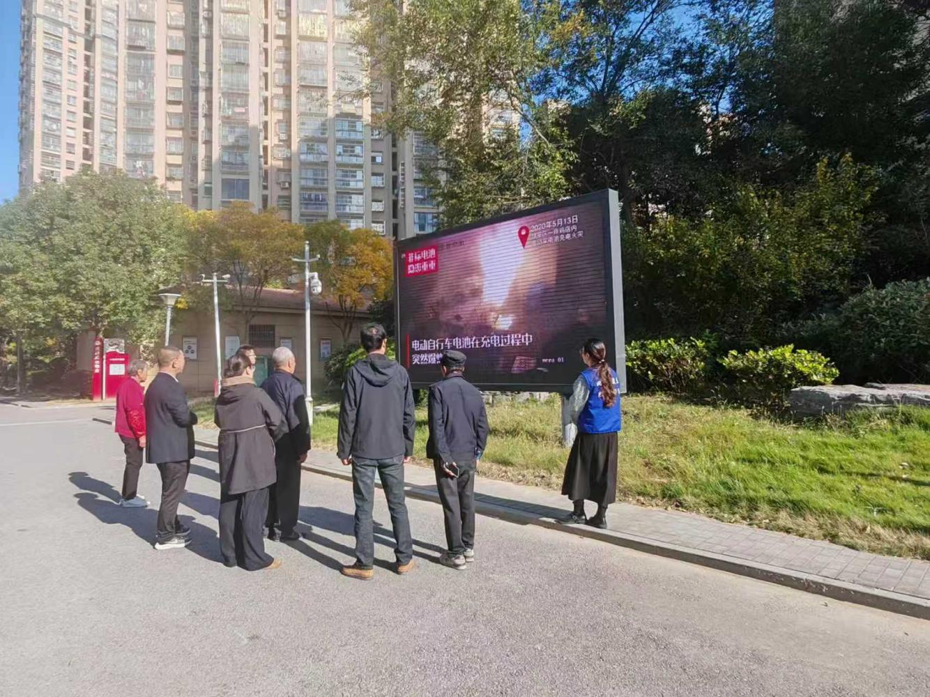 本次活动利用社区公共电子大屏,循环播放了系列消防安全警示教育片。视频中以真实的火灾案例,生动直观地展示了家庭用火用电不当引发的严重后果,以及正确的扑救和逃生方法,吸引了众多居民驻足观看,起到了强烈的警示作用。