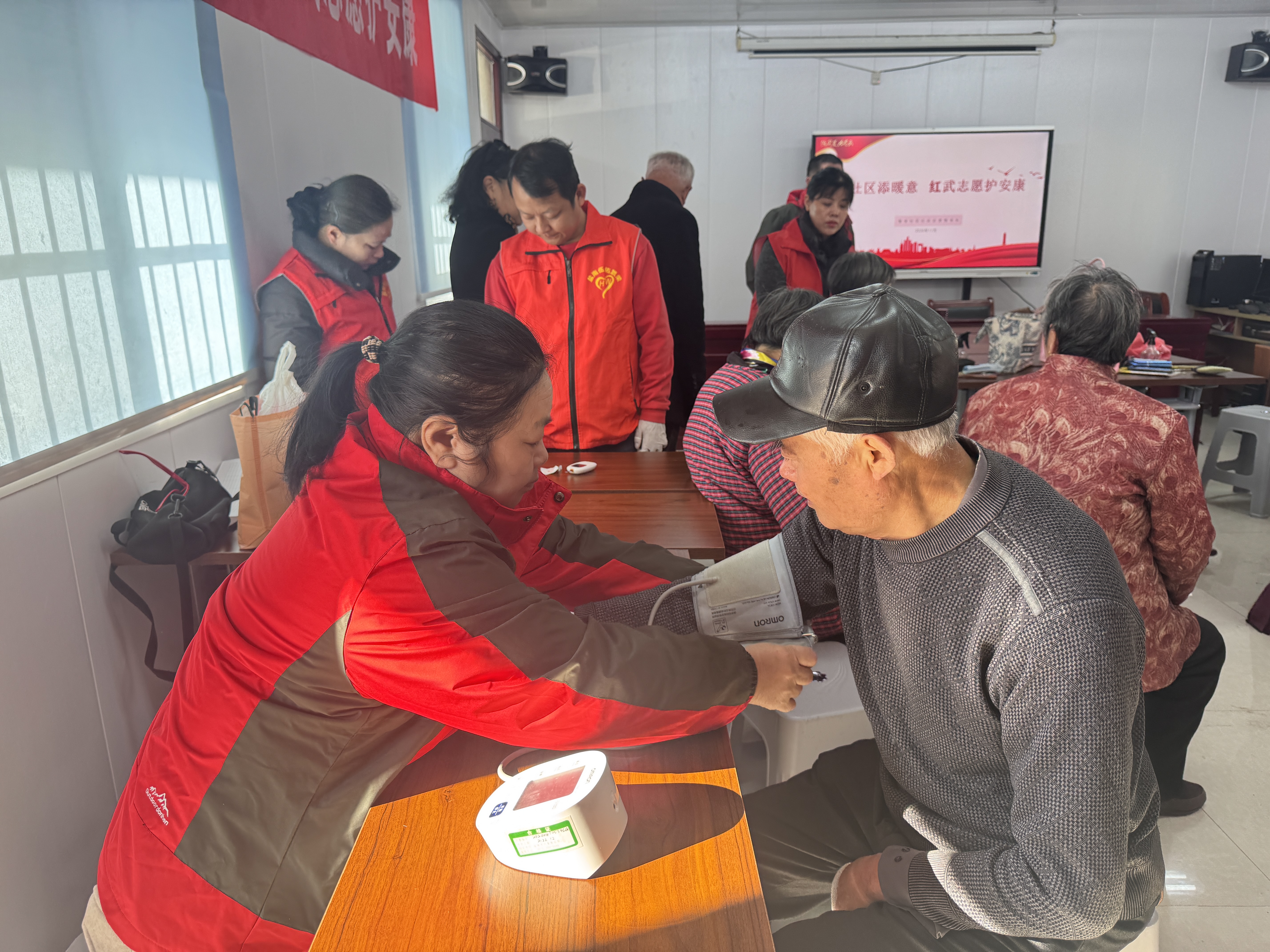 11月20日,伍佑街道繁荣社区党总支联合盐城市宏武志愿服务队开展“繁荣社区添暖意宏武志愿护安康”活动,为辖区老年人送上“健康大礼包”,让冬日增添浓浓暧意。