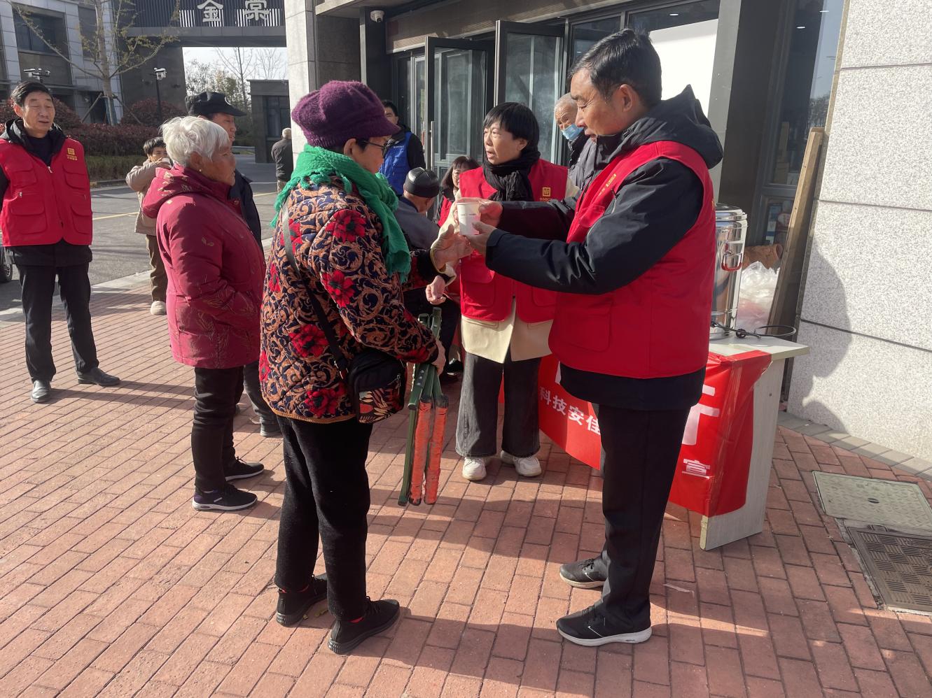 活动在金堂名邸小区东门温馨开展。社区和物业志愿者早早地支起了服务点,将一杯杯热气腾腾的红枣枸杞姜茶递到过往居民手中。这杯精心熬制的茶饮,不仅驱散了身体的寒意,更温暖了大家的心田。居民们手捧暖茶,脸上洋溢着幸福的笑容,纷纷为这份“接地气”的关怀点赞。