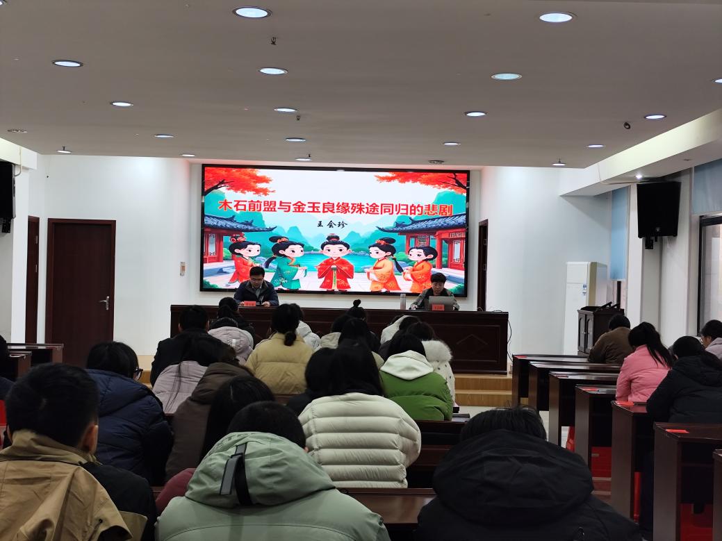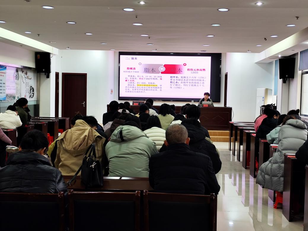 12月9日下午,盐南高新区科城街道东进社区与盐城幼儿师范高等专科学校继续教育学院联合举办《红楼梦》专题讲座,进一步弘扬中华优秀传统文化,丰富社区居民精神文化生活,引导居民养成爱阅读的良好习惯。盐城幼儿师范高等专科学校继续教育学院副院长、副教授王会珍应邀主讲,该社区50余名文学爱好者听取讲座。