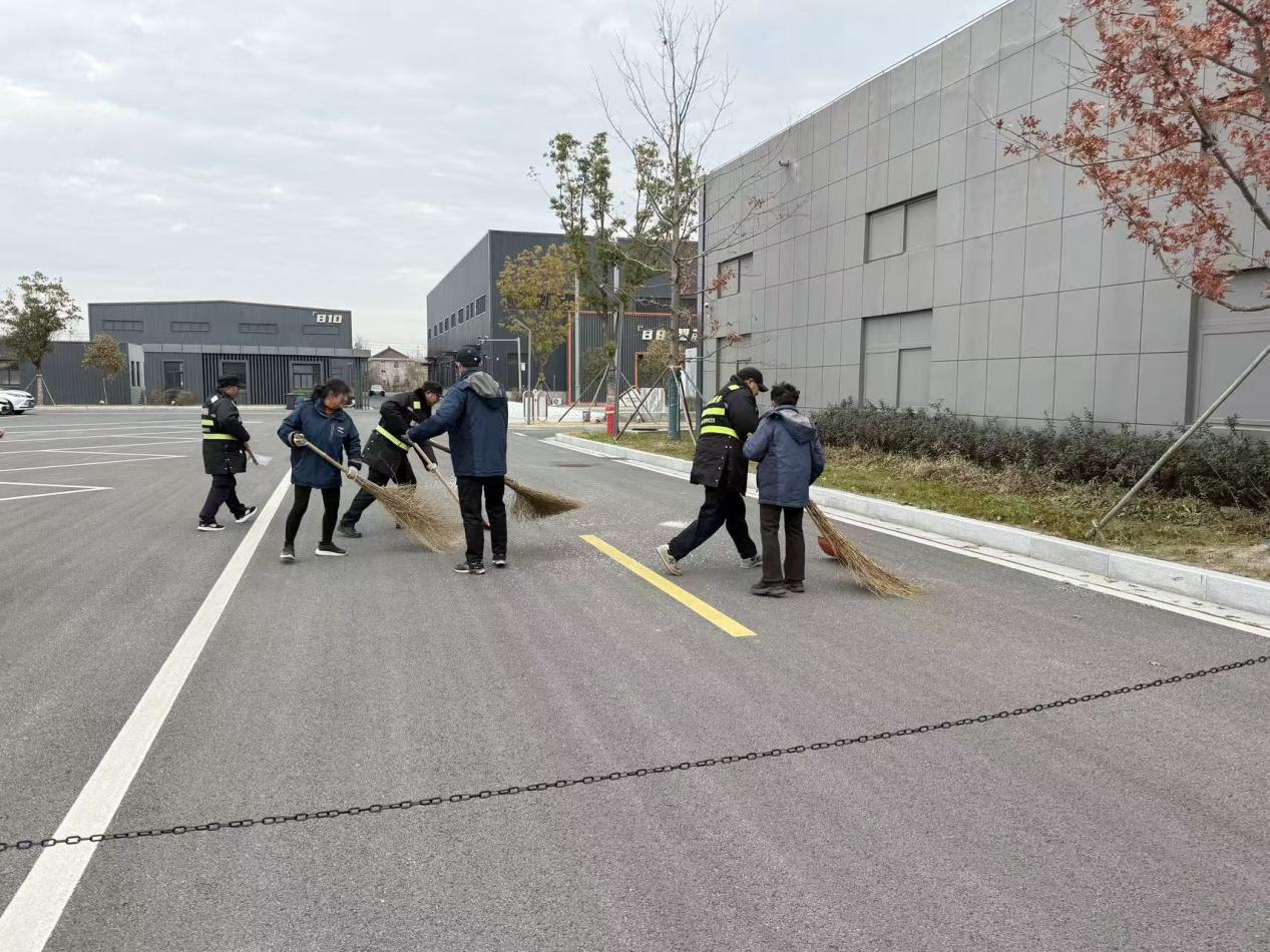 培训以“实战化、标准化”为核心,围绕除雪应急预案细则、人员分工协作流程等关键内容展开。演练过程中,全体物业人员严格遵循预案要求,模拟降雪后应急响应全流程,从物资快速调配、人员分组作业到融雪剂科学撒布,积雪清扫,各环节衔接紧密、执行高效,充分展现了园区物业团队的应急处置能力与协作精神。