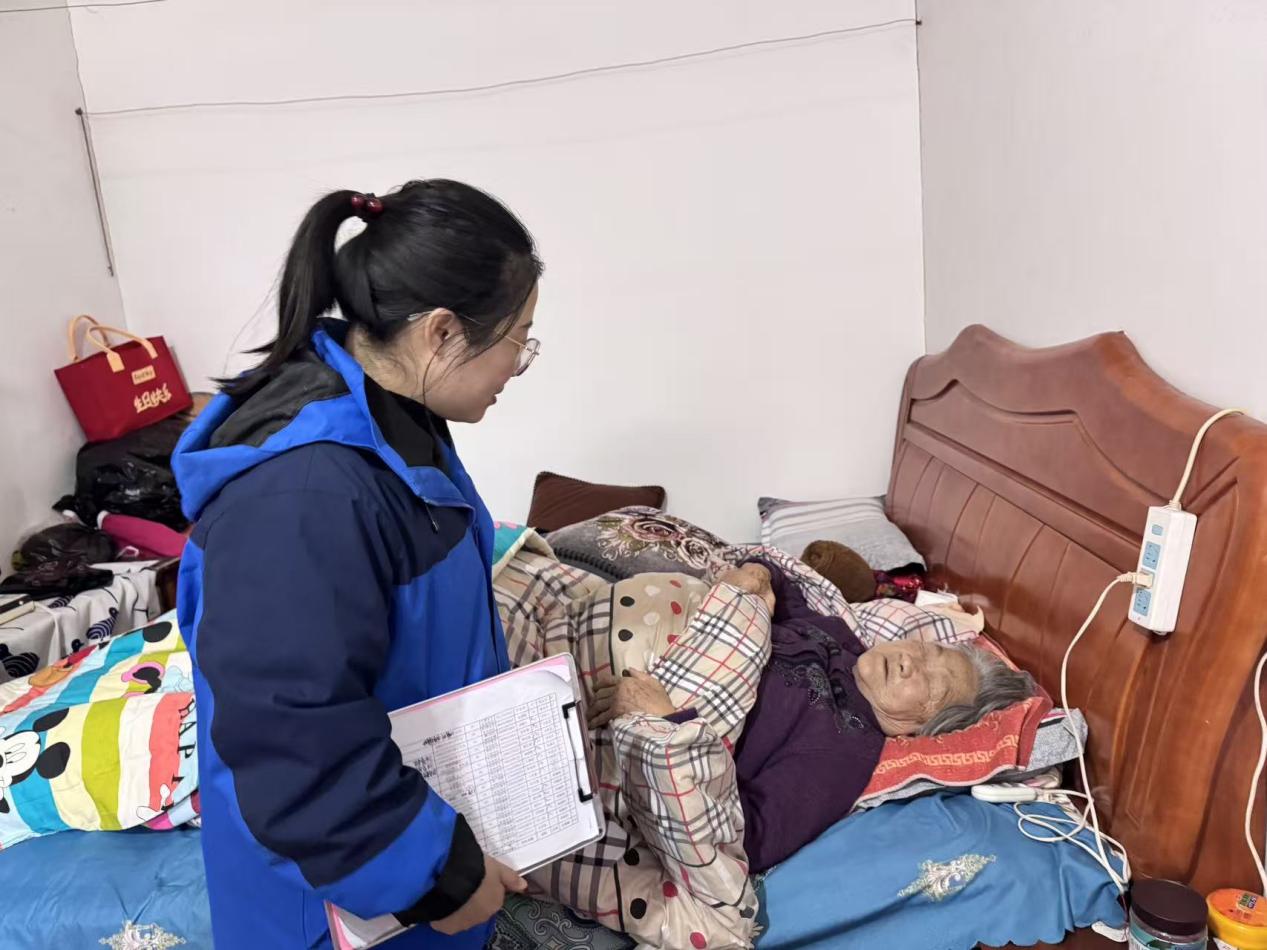 得知柏奶奶摔伤出院,社区网格员王荣榕立即上门探望。柏奶奶视力残疾,一直是社区重点关照对象。她细心倾听奶奶讲述病情,及时联系其子女,详细说明意外险理赔和长期护理险政策,协助他们准备材料。此后,她也常去家中看望,持续关心老人的康复与生活。
