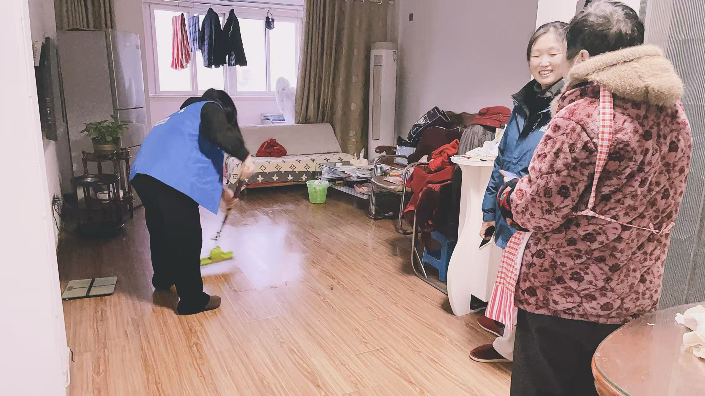 唠完家常,网格员们便主动忙碌起来,帮老人打扫屋内卫生。拿起拖把仔细拖地,用抹布认真擦拭桌椅、窗户,将各个积灰的角落都清理得干干净净;随后还帮老人整理衣物,把厚实的棉衣、棉被整齐叠放,方便老人取用。对于部分行动不便、子女又不在身边的独居老人,网格员们逐一排查家中御寒物资是否充足,详细询问并记录老人的需求,并承诺会及时帮忙采购,解除老人的后顾之忧。在独居老人潘大爷家中,得知老人想买些蔬菜却因行动不便无法出门,网格员立刻记下老人的需求,约定第二天买好后送上门。“真是太感谢你们了,我年纪大了,腿脚不利索,出门买东西实在费劲,你们还专门帮我跑腿,考虑得太周到了。”潘大爷感激地说道。