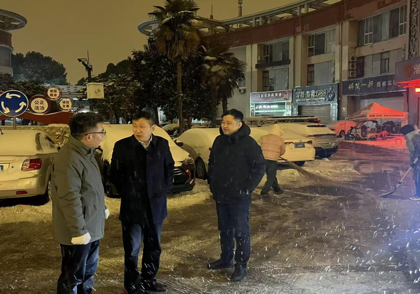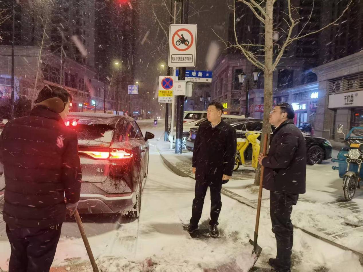 19日深夜北风呼啸,随着雨夹雪转为中雪,路上大面积积雪。街道领导闻雪而动。20日凌晨3:50,新河街道党工委书记李海洋、新河街道党工委副书记办事处主任李冬兵奔赴一线,深入海洋路大桥、高铁站等重点路段,现场督查指导清雪工作。