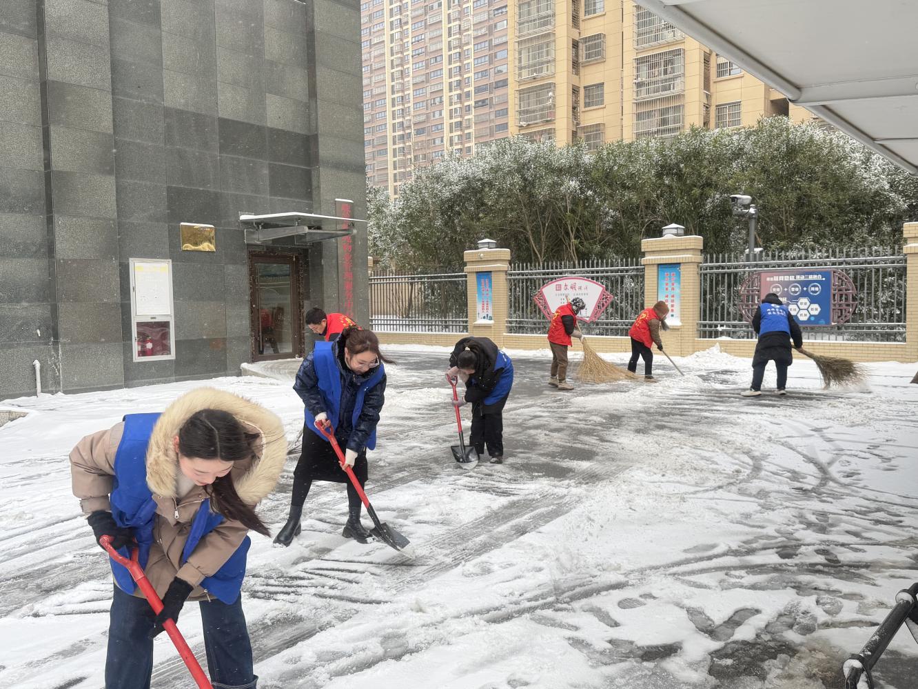 清晨,社区党员率先垂范,拿起铁锹、扫帚清理积雪。鲜艳的党徽在白雪映衬下格外醒目,“红马甲”成为冰天雪地中最温暖的色彩。网格员们和物业人员分区包片,对小区主干道、进出口进行撒盐除雪作业。