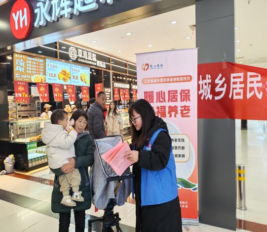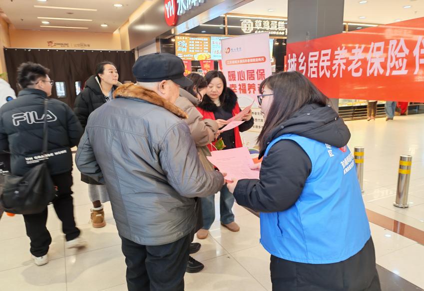 活动现场,社区网格员、志愿者们身着马甲,在商场入口等人流密集区域设立宣传服务点,将设计新颖的粉色宣传单页递到过往居民、商户手中。用通俗易懂的语言讲解参保条件、缴费档次、待遇计算等核心内容。不少群众纷纷驻足咨询,其中既有为父母了解政策的年轻人,也有主动询问缴费标准的老年居民。