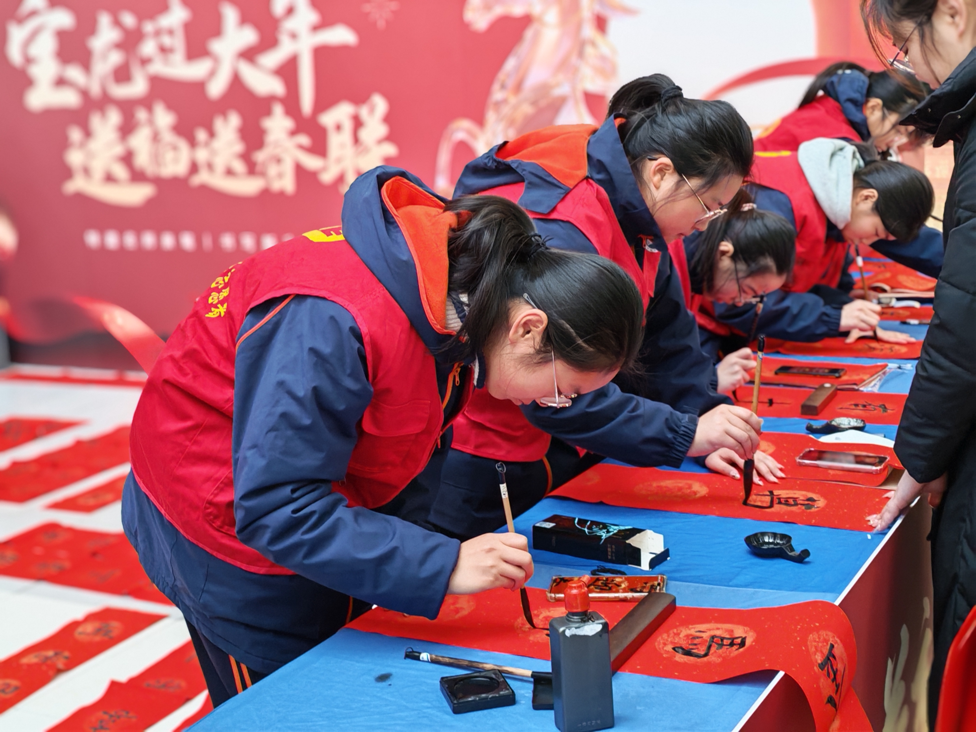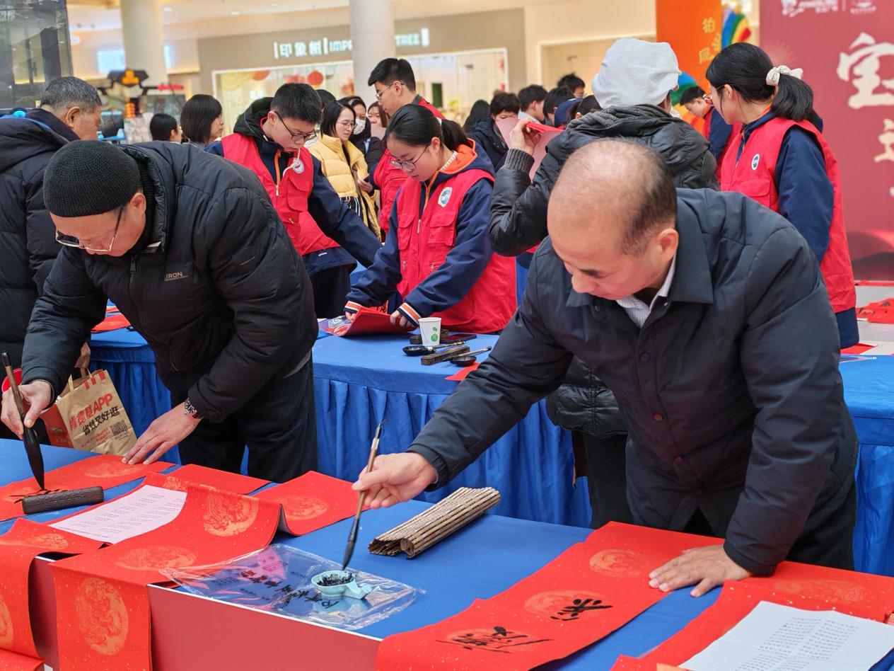 墨香迎马岁,福韵暖商圈。为传承中华优秀传统文化,营造喜庆祥和的新春氛围,让商圈居民、商户与新业态新就业群体提前感受浓浓年味,近日,黄海街道宝龙商圈党群服务中心联合盐城市文化馆,在“红印宝龙”商圈中庭举办“宝龙过大年·送福送春联”惠民活动,以笔墨传情、以福字暖心,为市民送上一份饱含传统文化韵味的新春祝福。