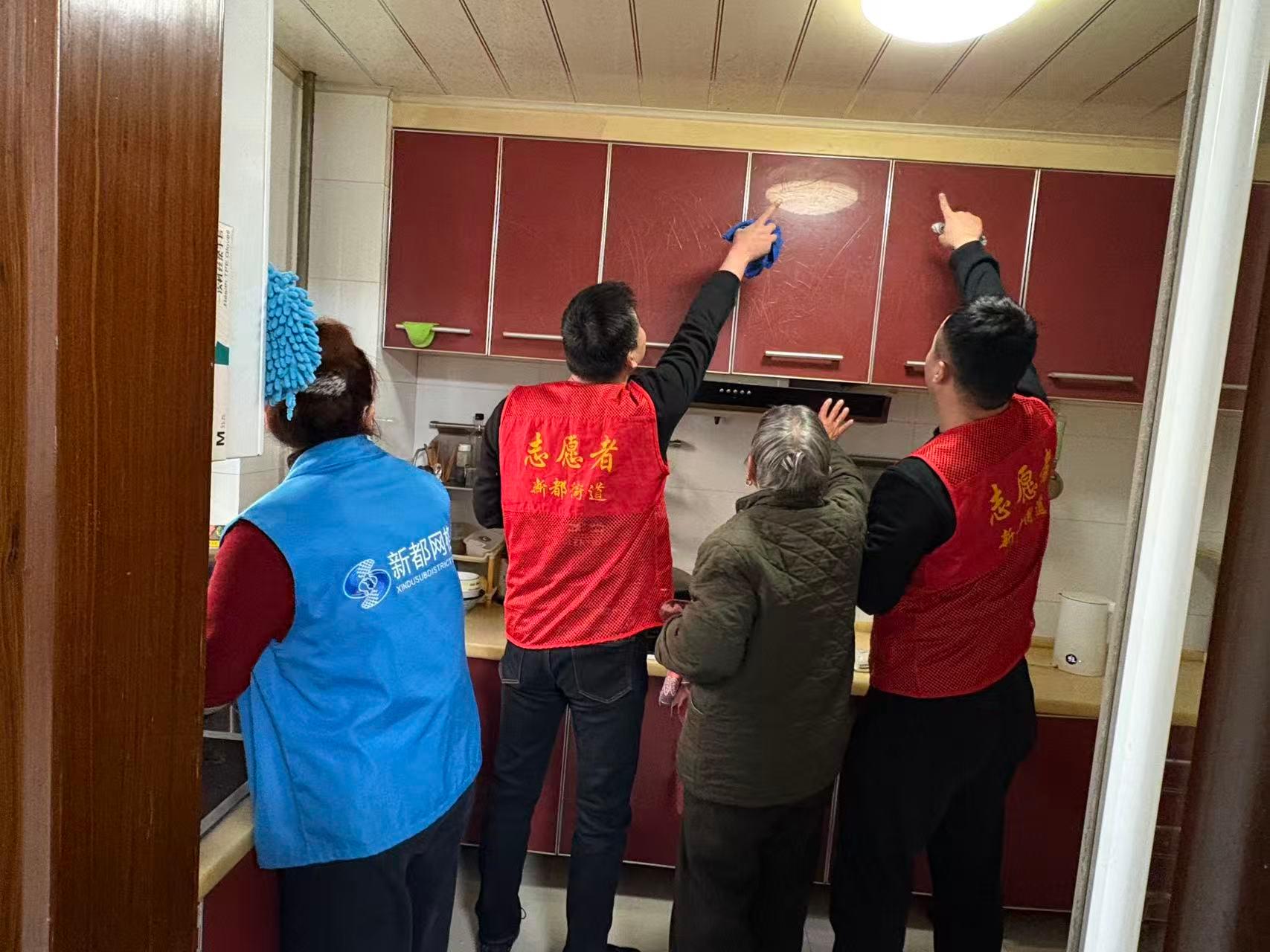 为深入传承弘扬雷锋精神,践行尊老敬老爱老助老的传统美德,有效破解辖区独居老人行动不便、居家清洁不易等实际困扰,近日,新都街道聚龙湖社区新时代文明实践站牵头,组织社区工作人员、网格员及志愿者,开展“学雷锋文明实践我行动”独居老人上门清洁关爱活动,以贴心服务为辖区老年人送去温暖与关怀,用实际行动守护“夕阳红”。