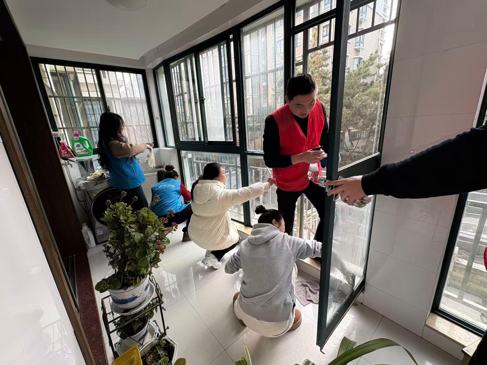 活动当日,社区工作人员与志愿者合理分组、有序入户,每抵达一户独居老人家中,都先与他们促膝谈心、亲切交流,细致询问他们的饮食起居、身体健康等情况,并结合老年人居家生活特点,耐心普及用火用电安全、防电信诈骗等实用知识,让他们真切感受到社区大家庭的温暖。随后,大家分工协作、默契配合,有条不紊地开展清洁工作,清扫地面杂物、擦拭门窗桌椅、清理卫生死角、整理生活用品,全力为老人营造一个整洁、舒适、安心的居住环境。